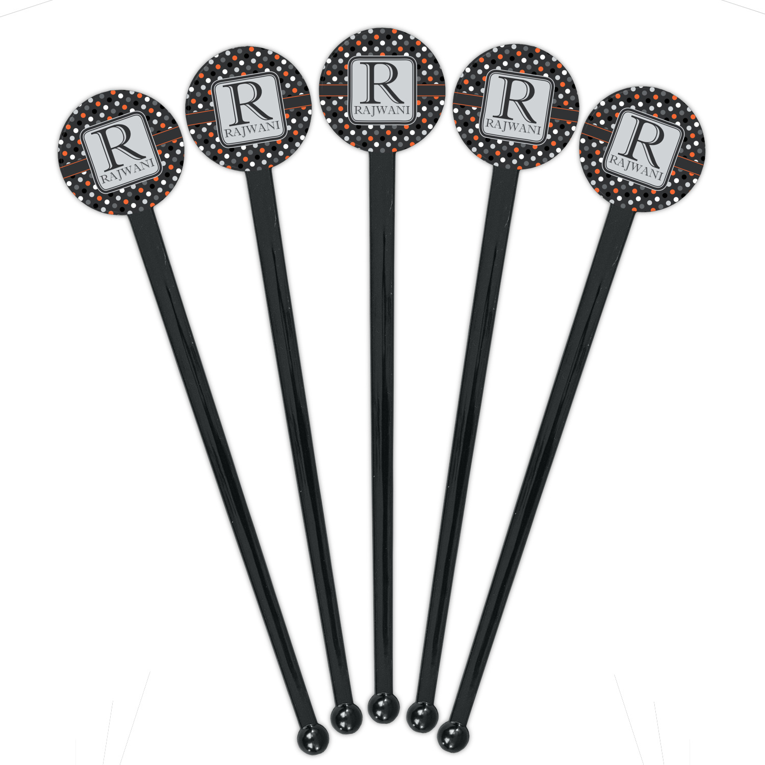 Shape + Symbol Designs for 7" Round Plastic Stir Sticks - Black - Double-Sided