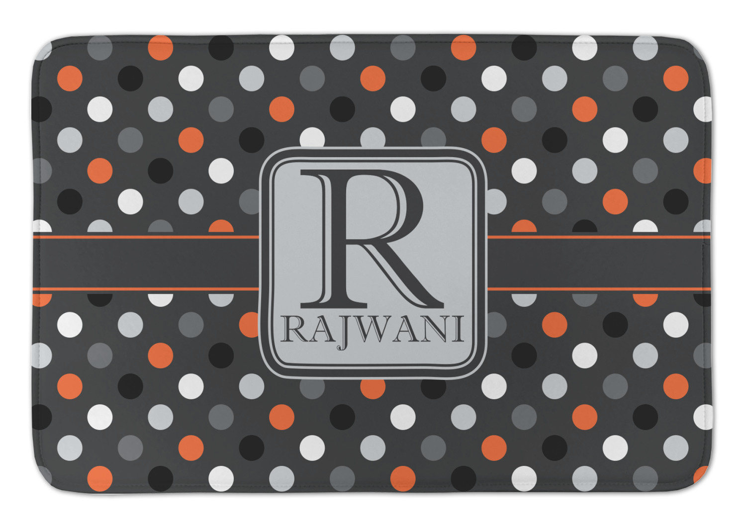 Polka dots have grown up and are not just for kids anymore. We have taken a pattern that is normally for children and by adding a modern color scheme have created a very versatile design that can be used for both adults and children. The polka dot design is set on a background of charcoal gray. Using coordinating colors of light gray, black, white, and orange create a very modern take on the timeless polka dot pattern.