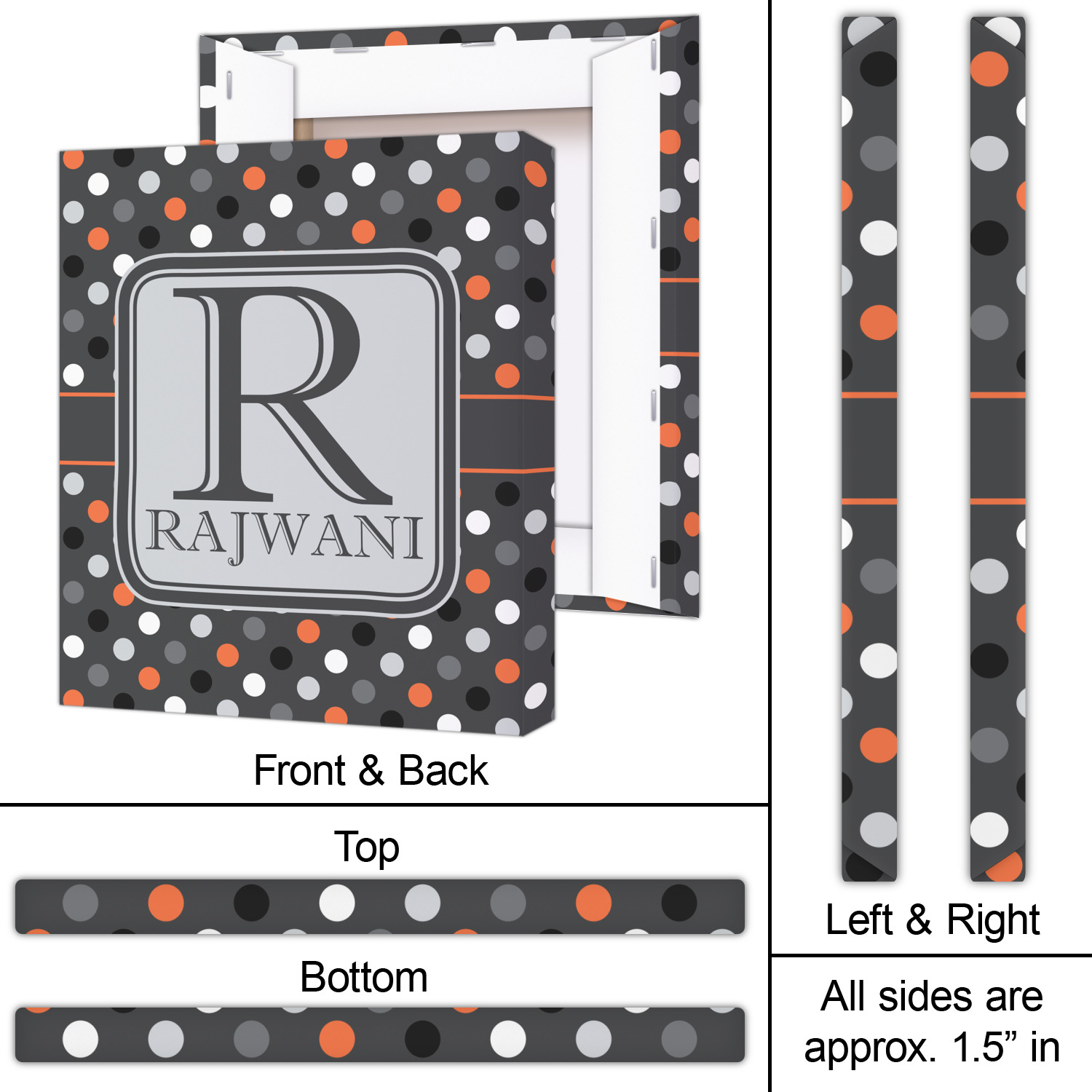 Polka dots have grown up and are not just for kids anymore. We have taken a pattern that is normally for children and by adding a modern color scheme have created a very versatile design that can be used for both adults and children. The polka dot design is set on a background of charcoal gray. Using coordinating colors of light gray, black, white, and orange create a very modern take on the timeless polka dot pattern.