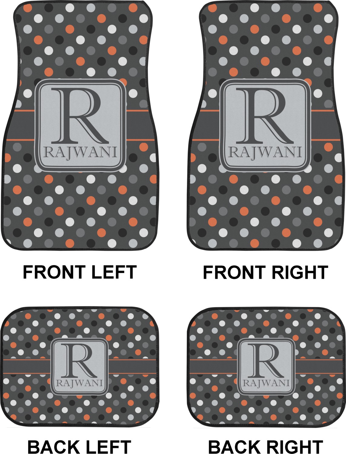 We craft our auto floor mats mats from polyester, apply a black finish to the edges, and lined at the bottom to prevent slippage. These mats protect your floors from grass, mud, and any accidental spills. We display your personalized design on the front face of each mat. The sizes of these car floor liners are standardized to provide a versatile fit for all vehicles. The front rows car mats measure at 17 by 26.5 inches, while the back rows measure at 17 by 13 inches. We sell three packages of car floor mats. You can purchase a pair of front row car mats, a pair of back row car mats, or a set of front row and back row car mats. To make an informed purchase, we recommend measuring the surface area of your car floors.