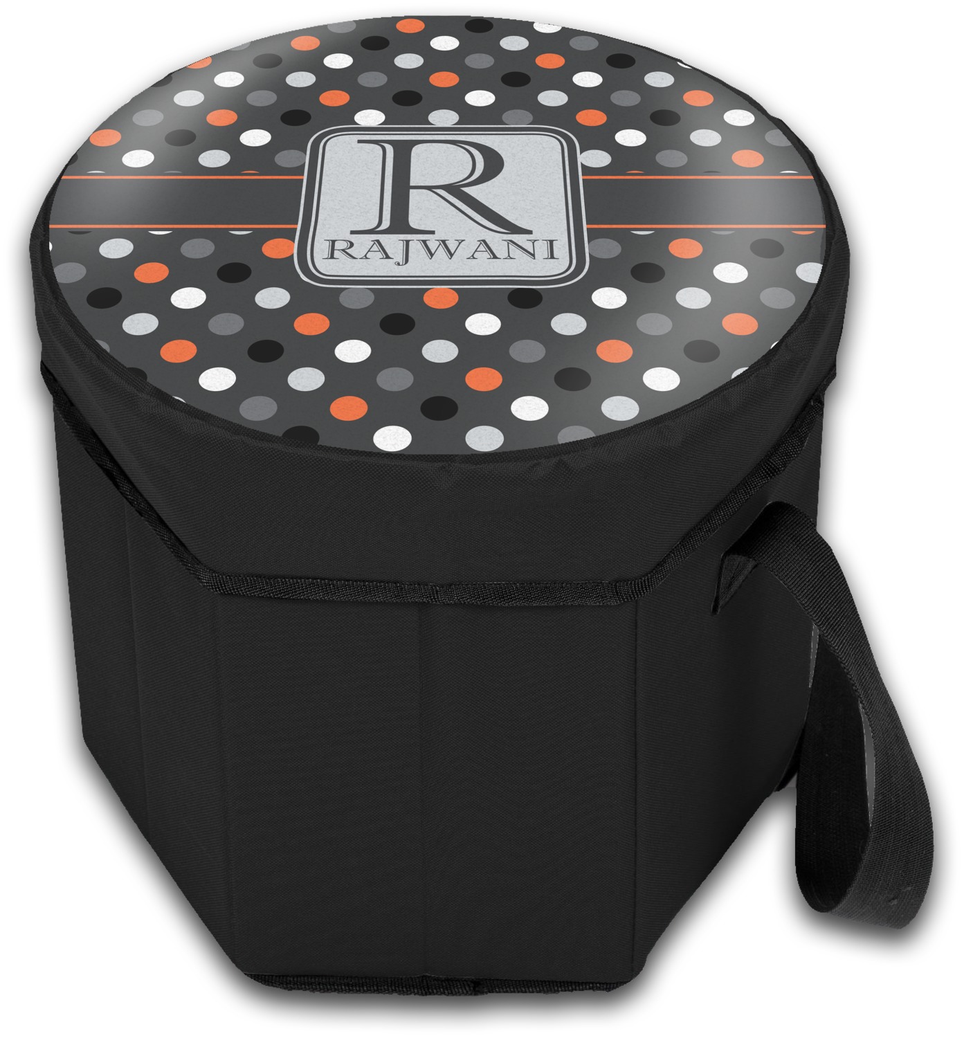 Our collapsible insulated coolers feature a unique six-sided hexagon shape, are lightweight, durable and can be turned into a seat. This cooler is fully insulated with silver foil lining to keep food and drinks hot or cold, and has a 12-quart capacity. Although this cooler collapses for easy transport, hidden inside are composition panels made of sturdy wood that give the frame strength and allow this cooler to be used as a seat. Simply sit down on the personalized cover and give your legs a break! (Maximum weight capacity of 200 pounds.)