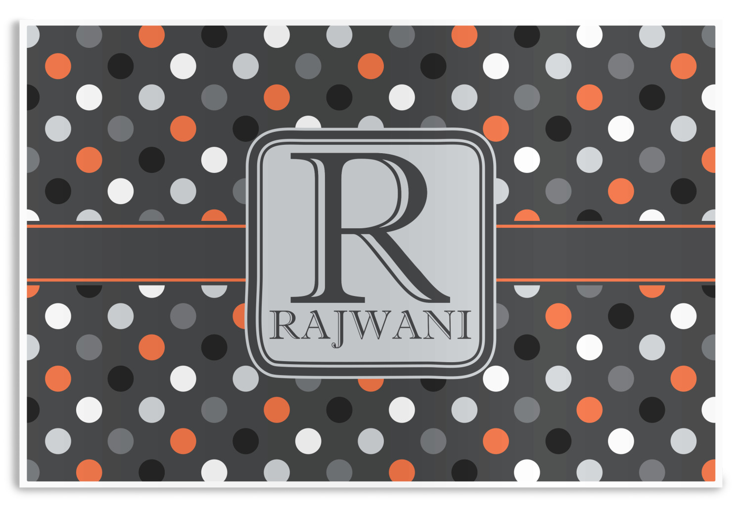 Polka dots have grown up and are not just for kids anymore. We have taken a pattern that is normally for children and by adding a modern color scheme have created a very versatile design that can be used for both adults and children. The polka dot design is set on a background of charcoal gray. Using coordinating colors of light gray, black, white, and orange create a very modern take on the timeless polka dot pattern.