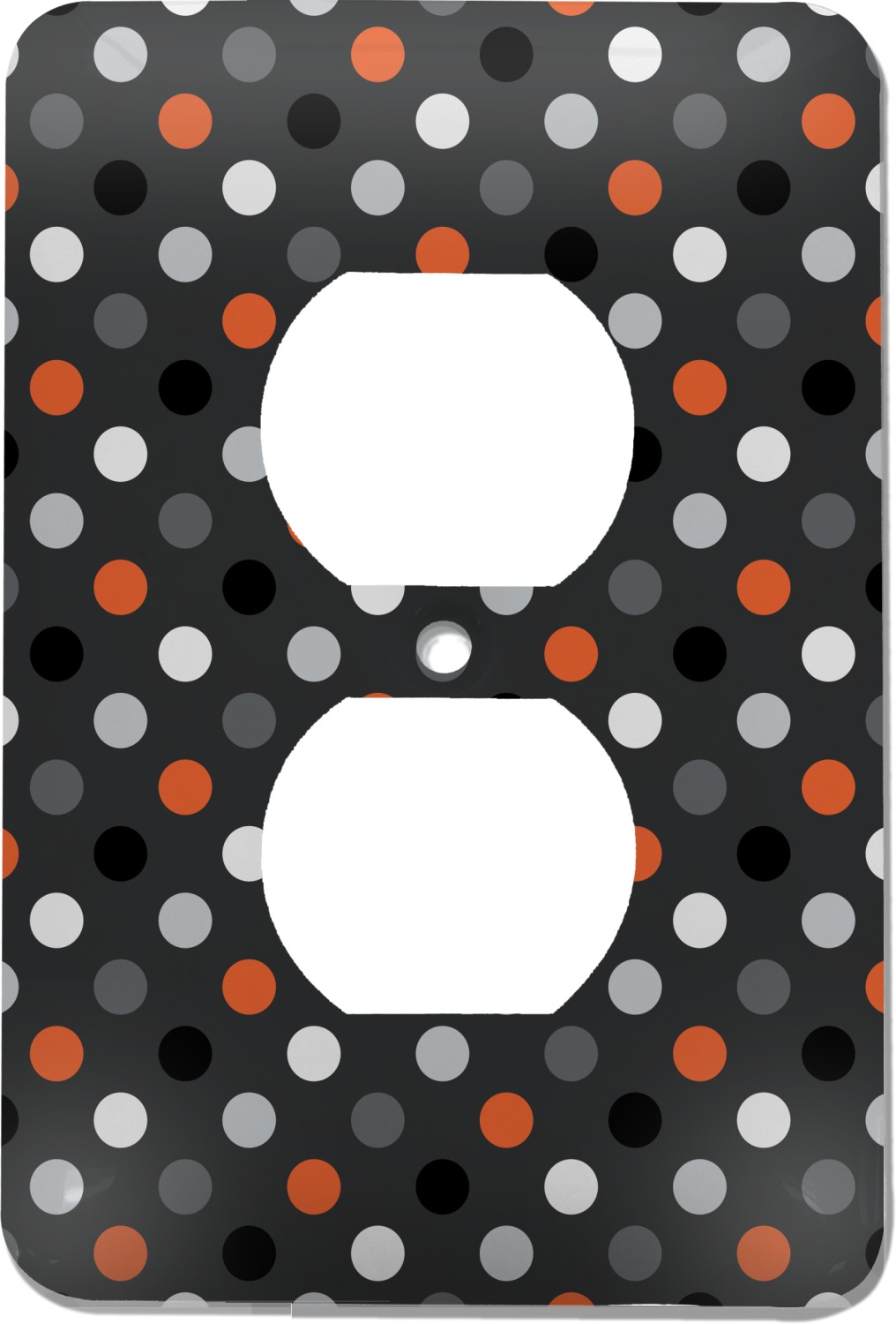 Polka dots have grown up and are not just for kids anymore. We have taken a pattern that is normally for children and by adding a modern color scheme have created a very versatile design that can be used for both adults and children. The polka dot design is set on a background of charcoal gray. Using coordinating colors of light gray, black, white, and orange create a very modern take on the timeless polka dot pattern.