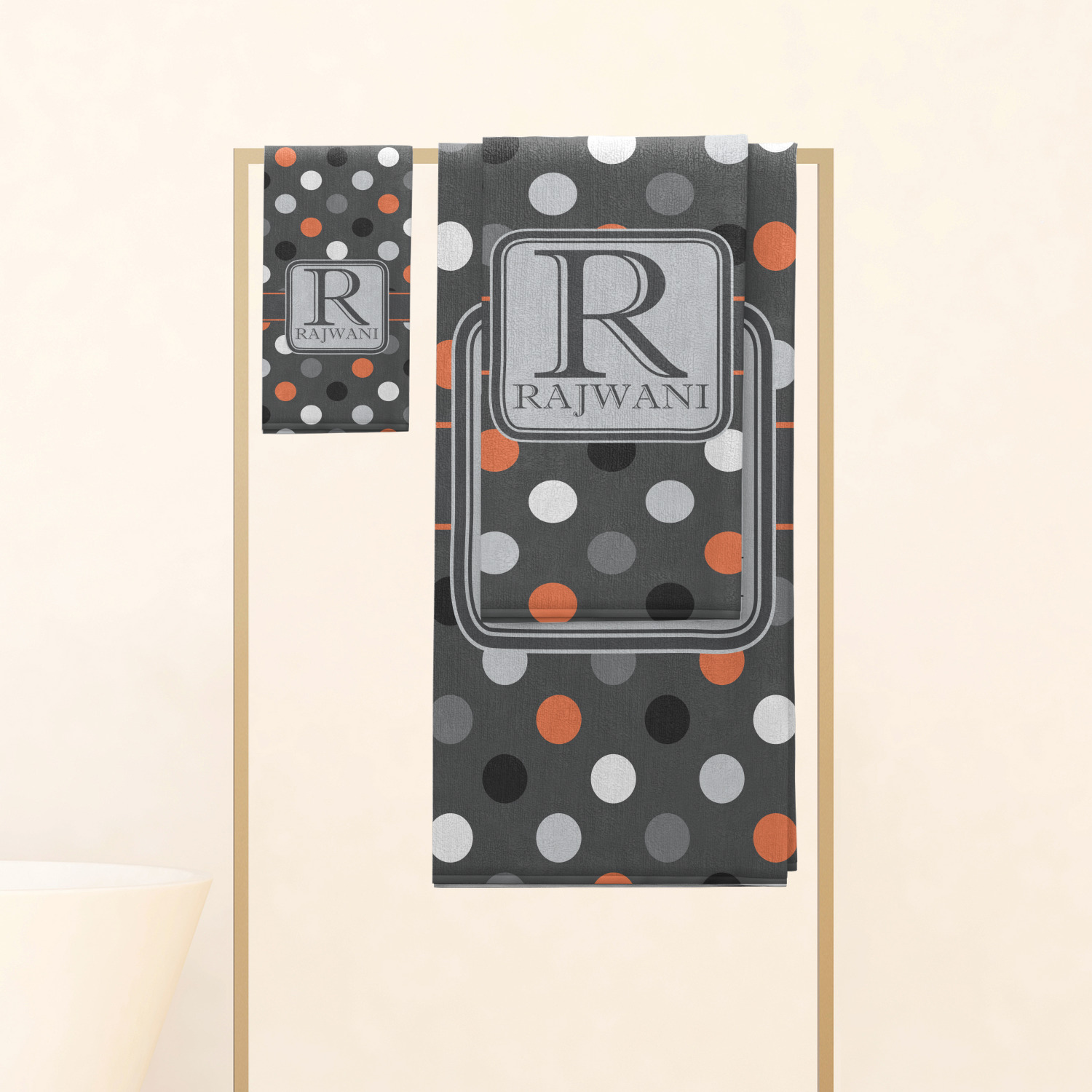 Polka dots have grown up and are not just for kids anymore. We have taken a pattern that is normally for children and by adding a modern color scheme have created a very versatile design that can be used for both adults and children. The polka dot design is set on a background of charcoal gray. Using coordinating colors of light gray, black, white, and orange create a very modern take on the timeless polka dot pattern.