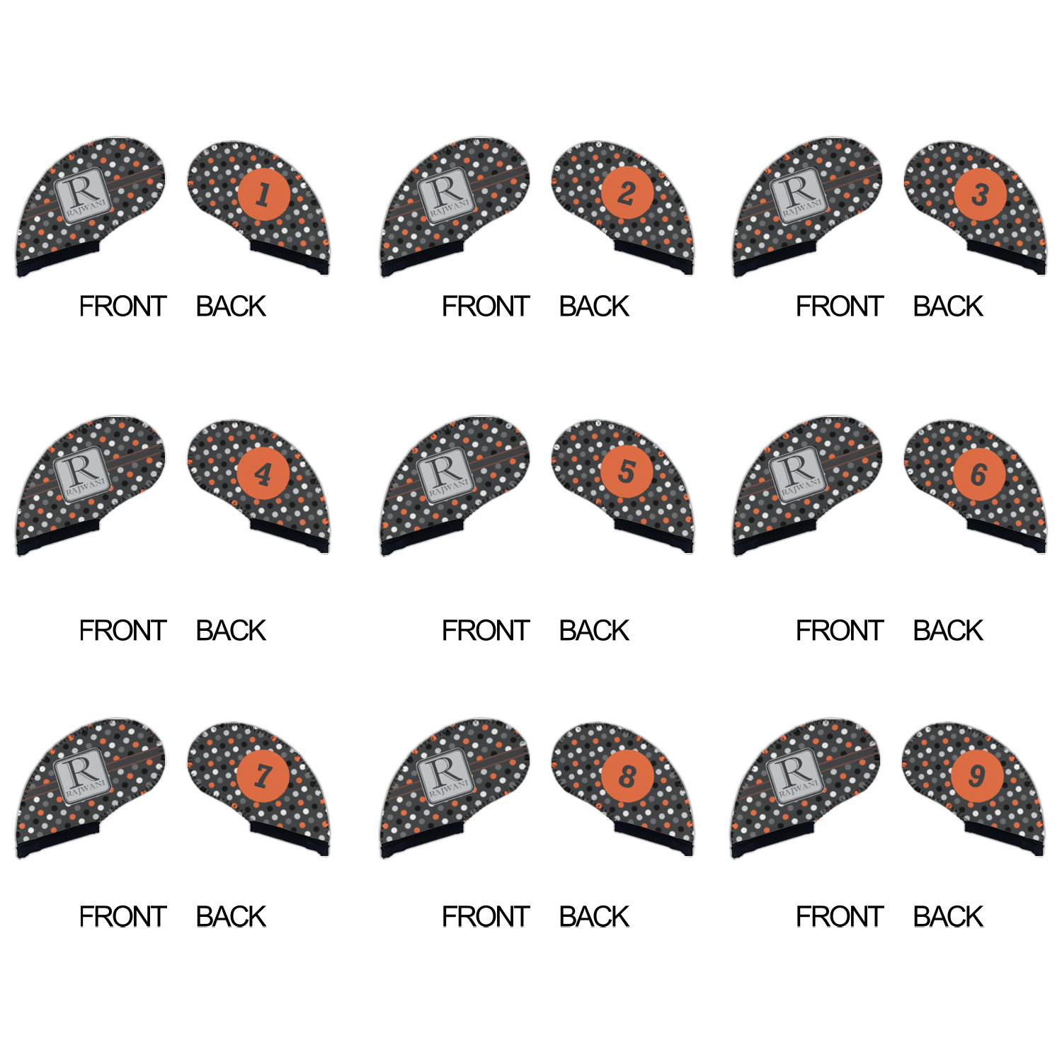 Shape + Symbol Designs for Golf Club Iron Covers - Set of 9