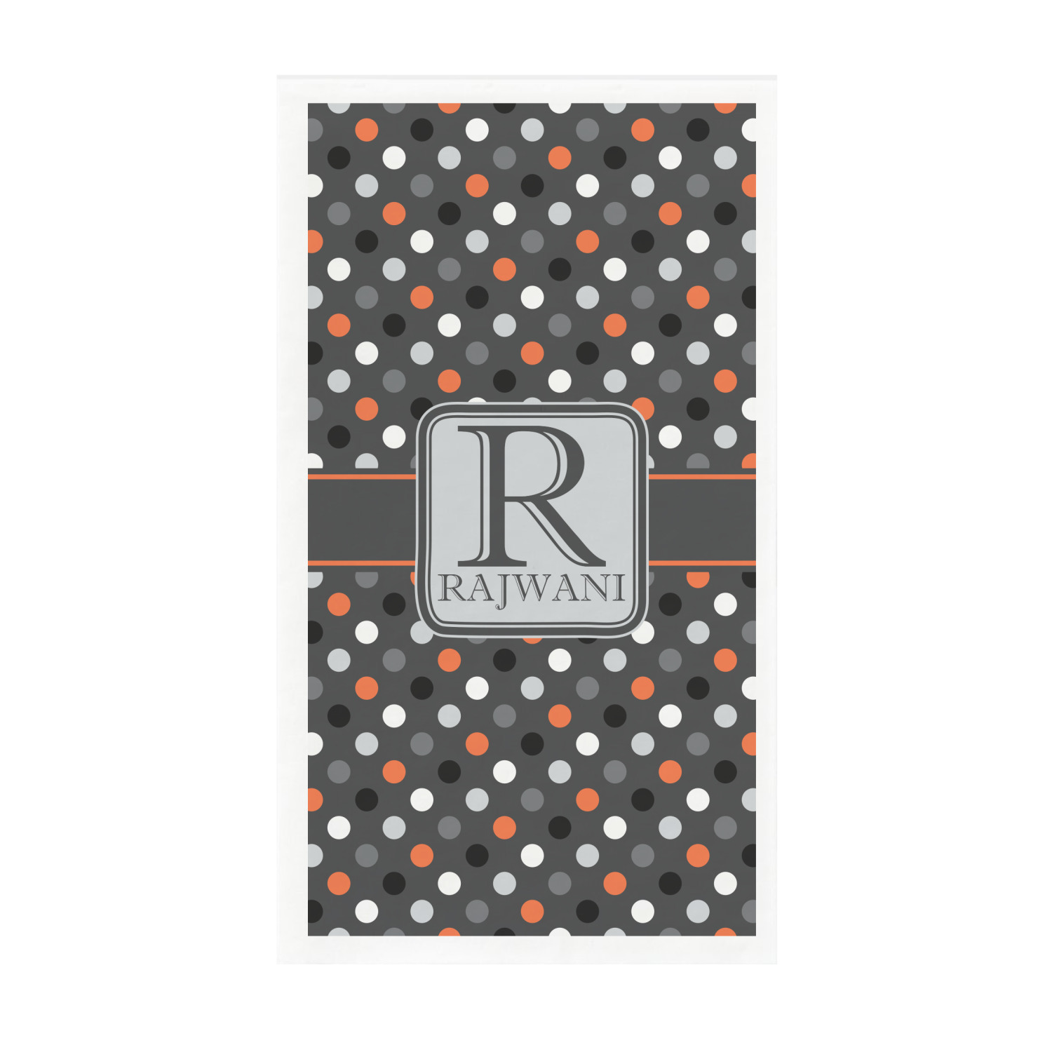 Polka dots have grown up and are not just for kids anymore. We have taken a pattern that is normally for children and by adding a modern color scheme have created a very versatile design that can be used for both adults and children. The polka dot design is set on a background of charcoal gray. Using coordinating colors of light gray, black, white, and orange create a very modern take on the timeless polka dot pattern.
