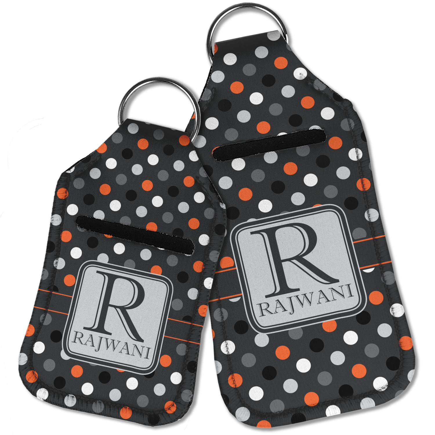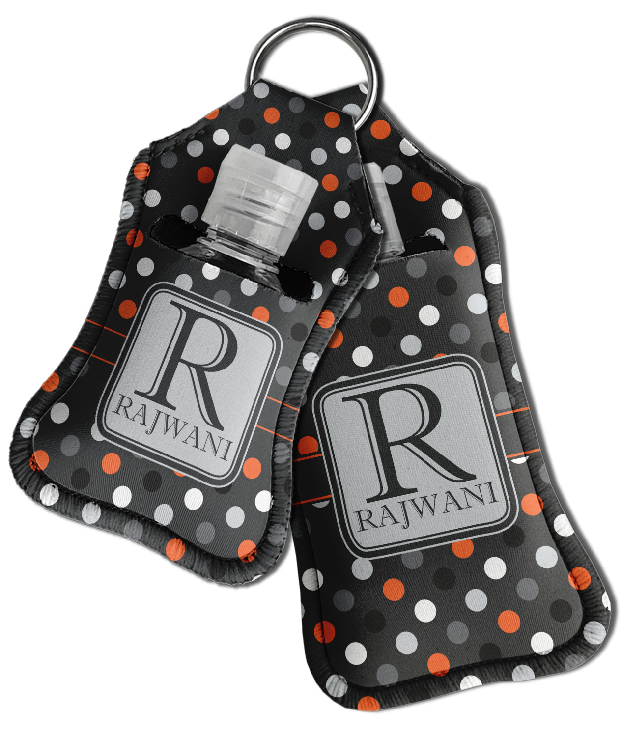 Each hand sanitizer holder comes with its own empty travel-sized, refillable hand sanitizer sure to fit snug in your customized sanitizer case! Our hand sanitizer cases are a durable, yet soft neoprene material sure to last any daily activities or travel agenda. Customize and personalize a hand sanitizer bottle holder with one of our two sizes - small (4.25" x 2.25") or large (5.5" x 2.5"). Each travel sanitizer holder comes with a keyring for attachment on bags, keys, or more!