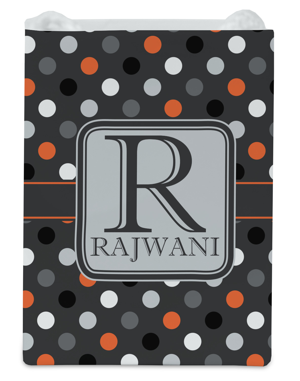 Polka dots have grown up and are not just for kids anymore. We have taken a pattern that is normally for children and by adding a modern color scheme have created a very versatile design that can be used for both adults and children. The polka dot design is set on a background of charcoal gray. Using coordinating colors of light gray, black, white, and orange create a very modern take on the timeless polka dot pattern.