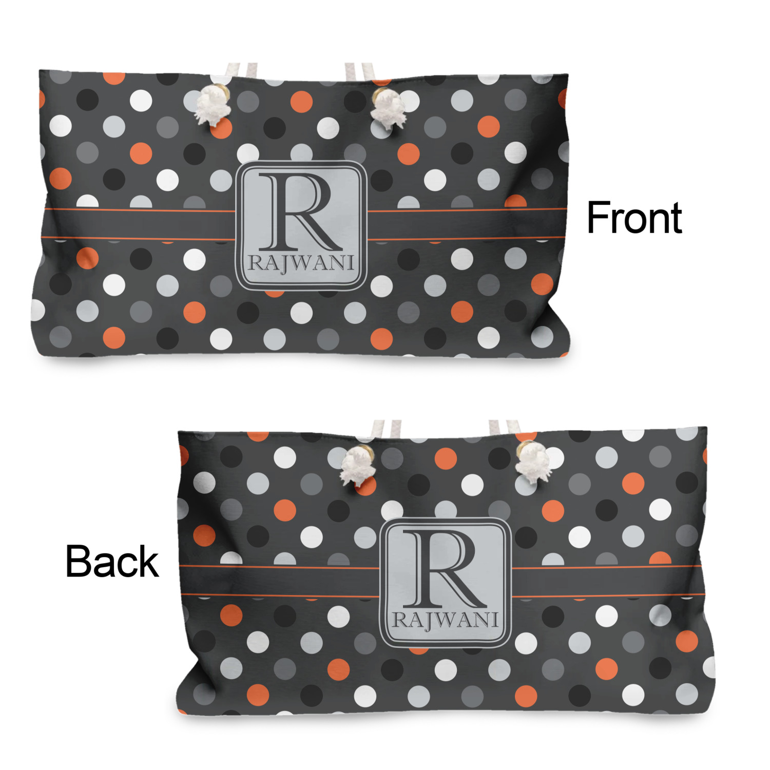 Personalization is also your choice and is completely free of charge. Add a monogram, initial, name or saying to the tote.