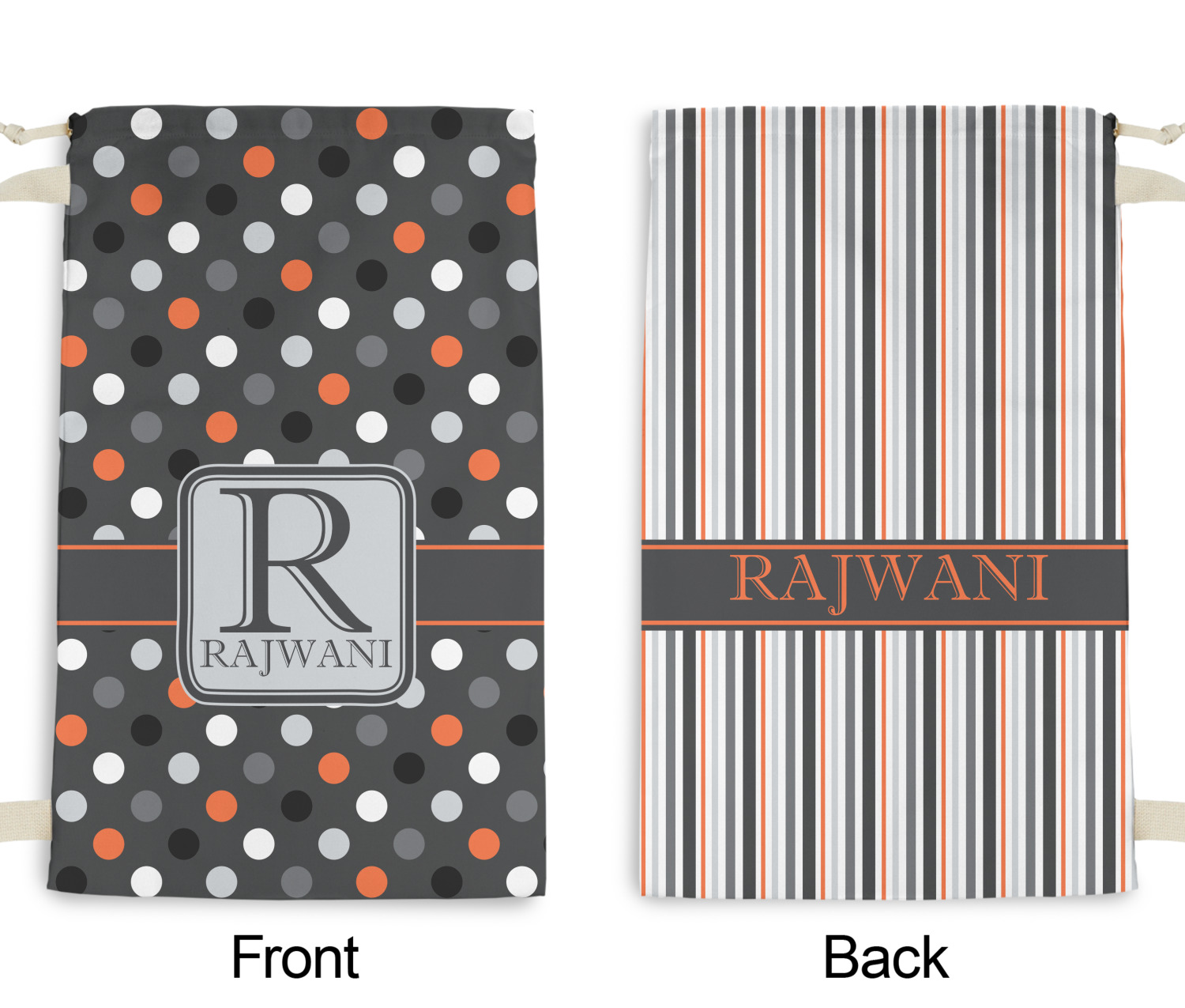 Carry your laundry in style with these customized laundry bags. Available in two sizes, featuring a natural colored woven strap and a cinch cord, these bags hold a lot of clothes or anything else you want to fit in them.