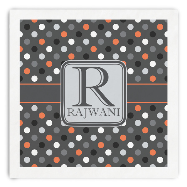 Polka dots have grown up and are not just for kids anymore. We have taken a pattern that is normally for children and by adding a modern color scheme have created a very versatile design that can be used for both adults and children. The polka dot design is set on a background of charcoal gray. Using coordinating colors of light gray, black, white, and orange create a very modern take on the timeless polka dot pattern.