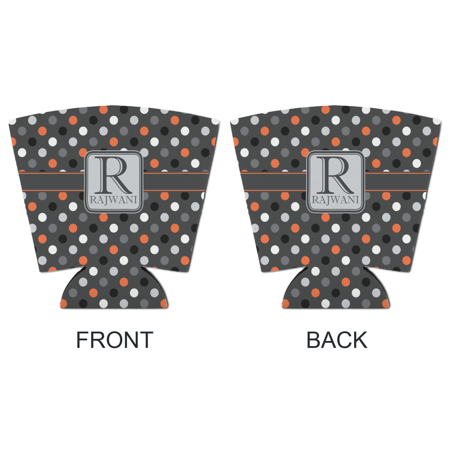 A wide band of charcoal gray with a orange trim pulls the design together. A modern square light gray label that is trimmed in double rows of dark charcoal and orange provide the focal point for personalization of your choice.