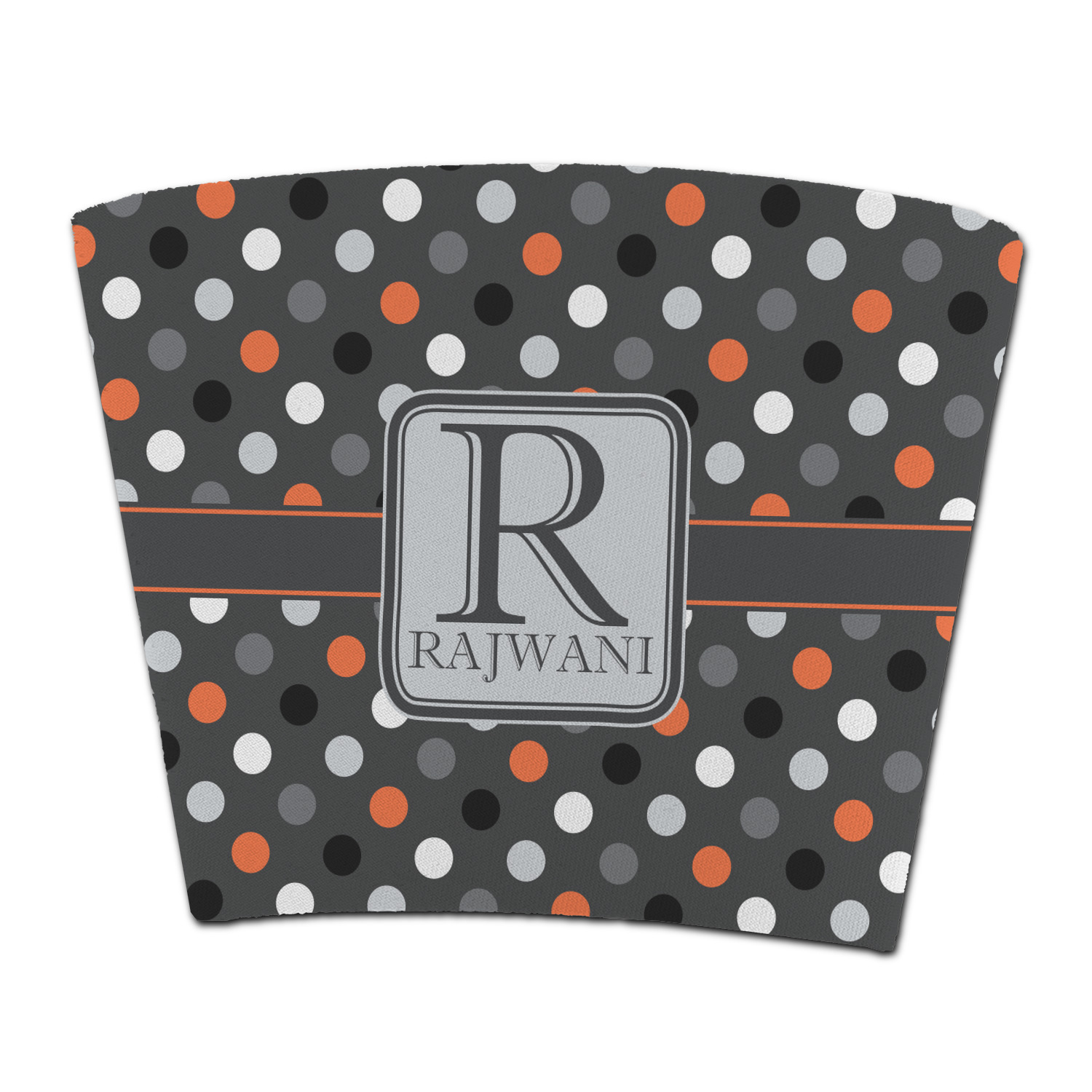 Polka dots have grown up and are not just for kids anymore. We have taken a pattern that is normally for children and by adding a modern color scheme have created a very versatile design that can be used for both adults and children. The polka dot design is set on a background of charcoal gray. Using coordinating colors of light gray, black, white, and orange create a very modern take on the timeless polka dot pattern.