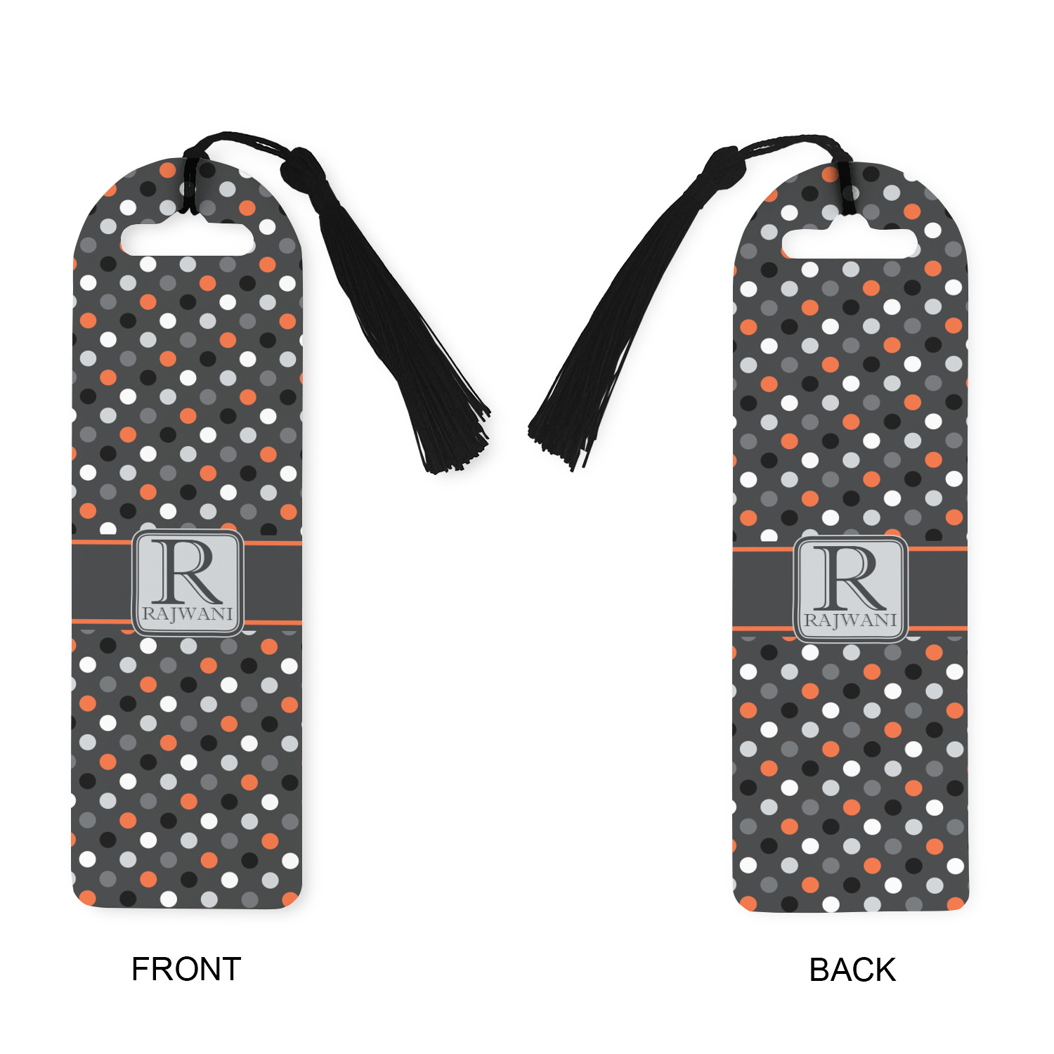 Made from a durable, flexible plastic, these bookmarks are printed with your custom design on them. With the tassel on them they make it easy to find your page in your book. These are a rectangular shape 7 1/4 inches tall with a rounded top and are approximately 2 1/4 inches wide.