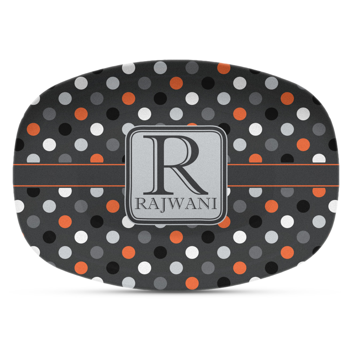 These serving platters are made from a composite, thermo-set, polymer plastic that gives it the versatility, durability, and weight of a melamine platter, without any of the downsides of melamine. These personalized platters, can withstand temperatures up to 250 degrees Fahrenheit, for up to 60 minutes. No harmful chemicals, such as BPA, formaldehyde, and DEHPs were used in the manufacturing of this product. This large serving platter measures at 14" x 10.25", and is spacious enough to hold any of your appetizers or bite-sized desserts. The platter exhibits your personalization across the entirety of its front.