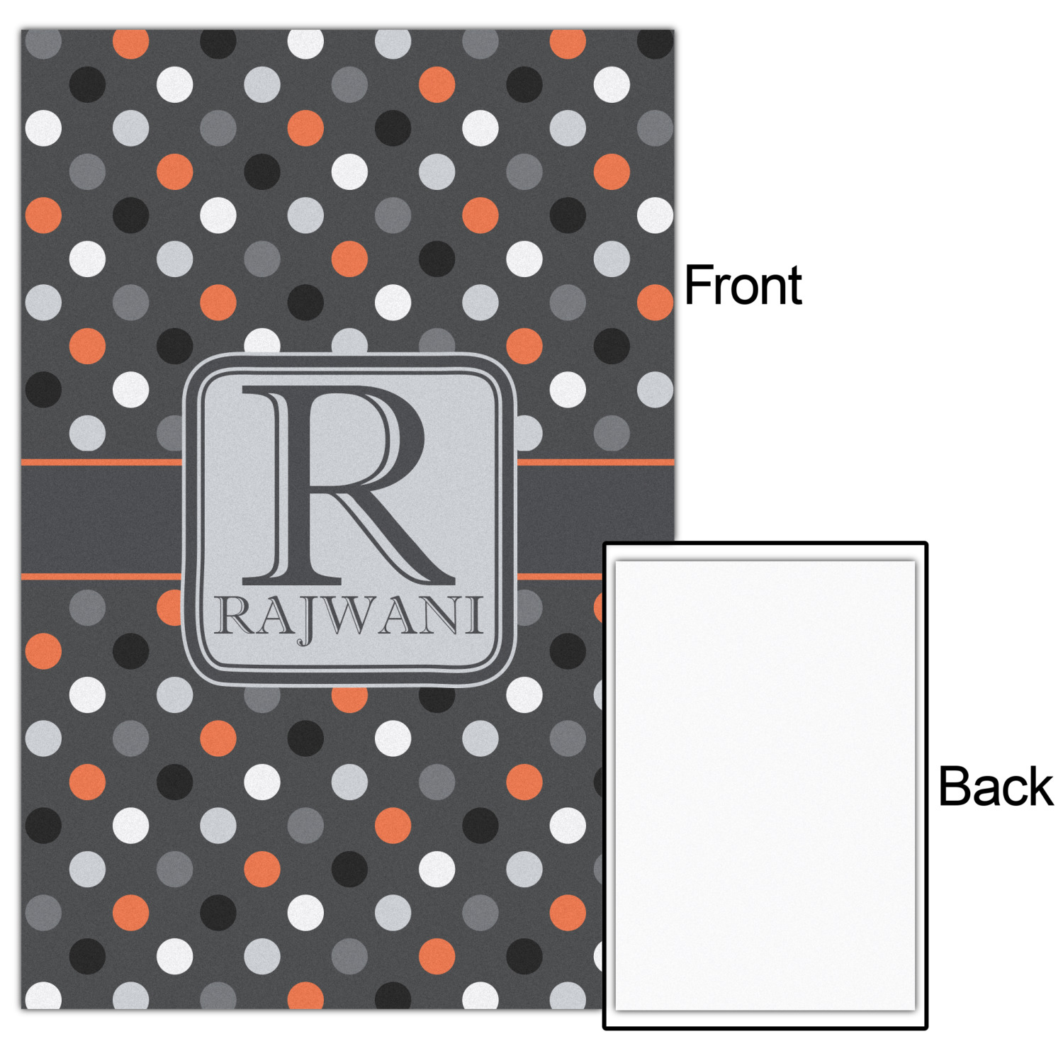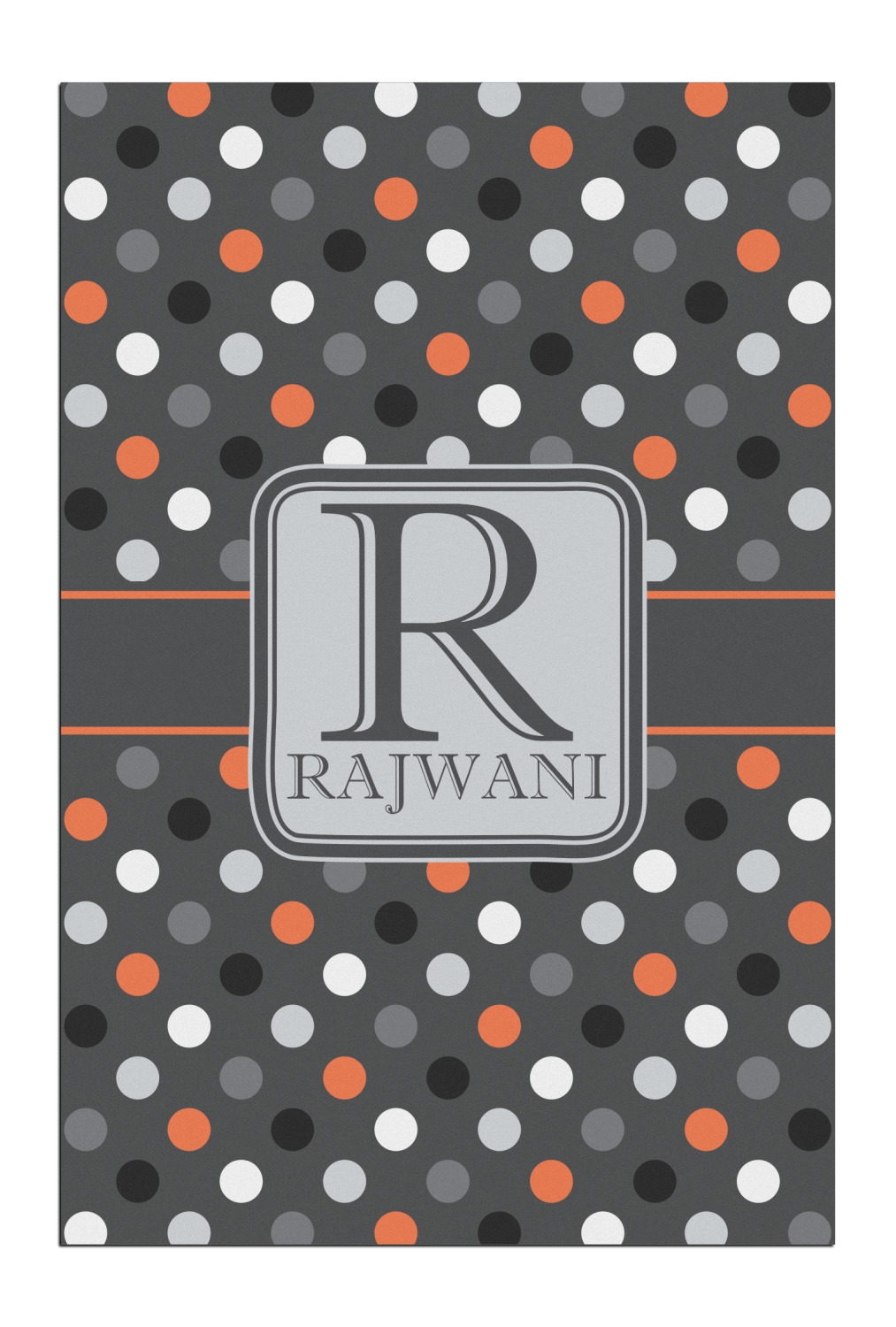 Polka dots have grown up and are not just for kids anymore. We have taken a pattern that is normally for children and by adding a modern color scheme have created a very versatile design that can be used for both adults and children. The polka dot design is set on a background of charcoal gray. Using coordinating colors of light gray, black, white, and orange create a very modern take on the timeless polka dot pattern.
