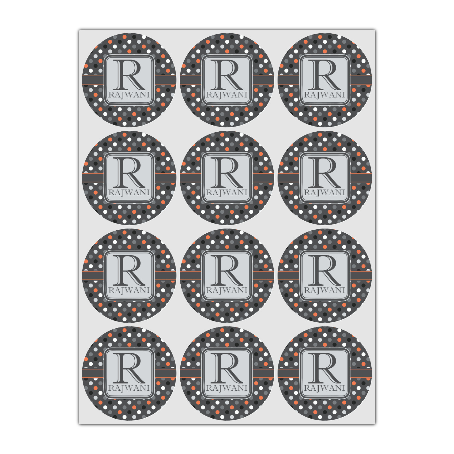 Polka dots have grown up and are not just for kids anymore. We have taken a pattern that is normally for children and by adding a modern color scheme have created a very versatile design that can be used for both adults and children. The polka dot design is set on a background of charcoal gray. Using coordinating colors of light gray, black, white, and orange create a very modern take on the timeless polka dot pattern.