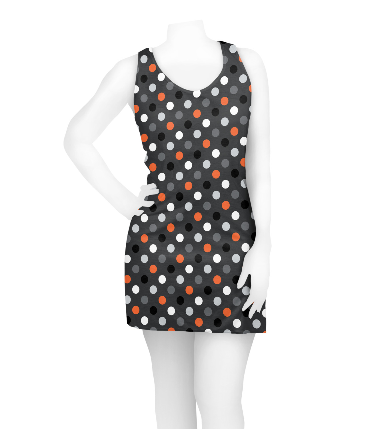 Polka dots have grown up and are not just for kids anymore. We have taken a pattern that is normally for children and by adding a modern color scheme have created a very versatile design that can be used for both adults and children. The polka dot design is set on a background of charcoal gray. Using coordinating colors of light gray, black, white, and orange create a very modern take on the timeless polka dot pattern.