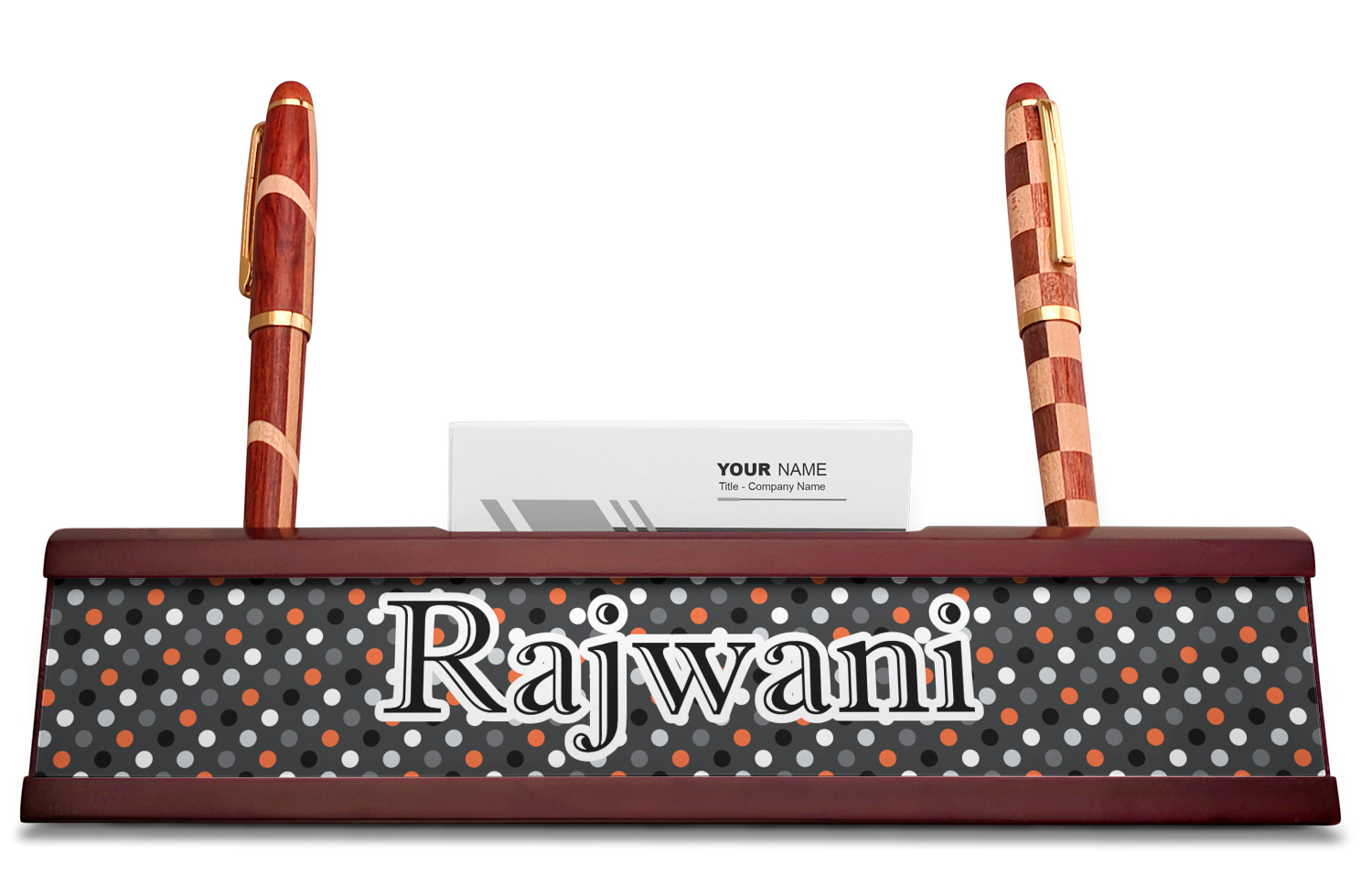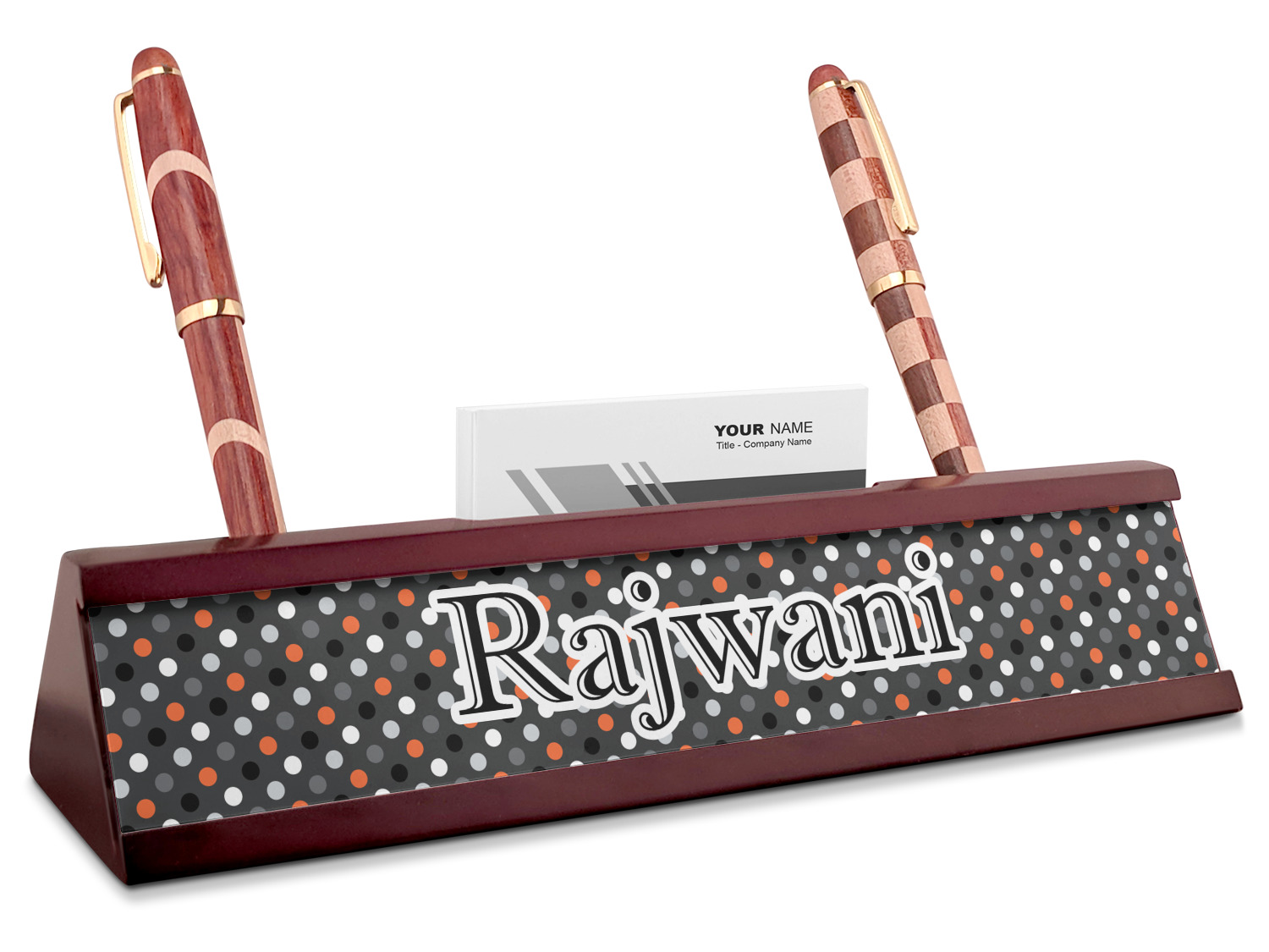 Shape + Symbol Designs for Red Mahogany Nameplates with Business Card Holder