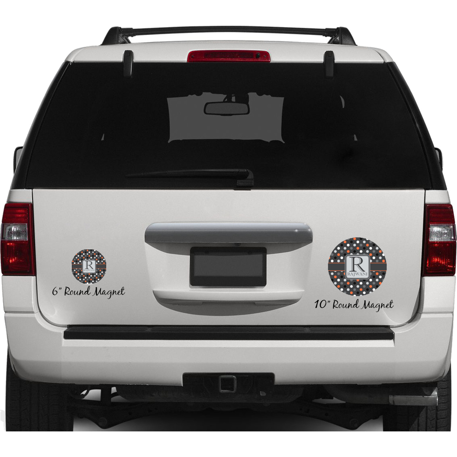 Your personalized car magnets are available for purchase in two shapes and two sizes. We carry round and square editions; each shape can either be 6 by 6 inches, or 10 by 10 inches, depending on your needs. Both versions are 1 millimeter thick, which is considered, within the industry, as the ideal thickness for automobile magnets. The magnetic car decals will adhere to any smooth, metal surface of your cars body, such as the trunk door or a side panel. However, please note that some vehicles are constructed from fiberglass bodies, which prevents the adhesion of anything magnetic. We advise that you test your vehicle before purchasing these magnets.