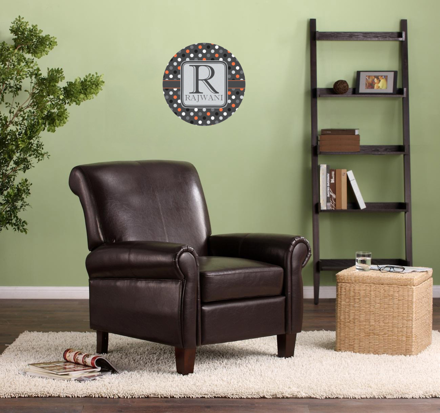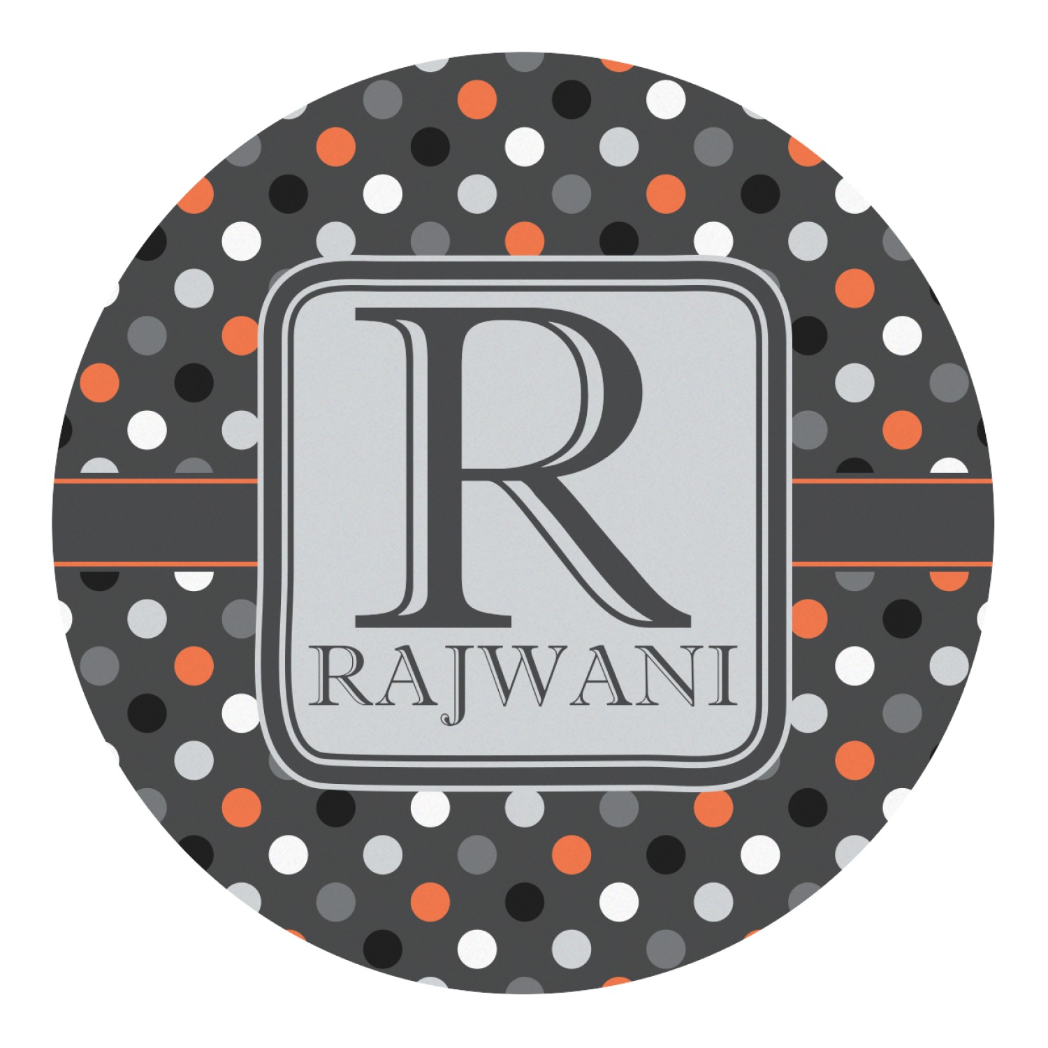 Polka dots have grown up and are not just for kids anymore. We have taken a pattern that is normally for children and by adding a modern color scheme have created a very versatile design that can be used for both adults and children. The polka dot design is set on a background of charcoal gray. Using coordinating colors of light gray, black, white, and orange create a very modern take on the timeless polka dot pattern.