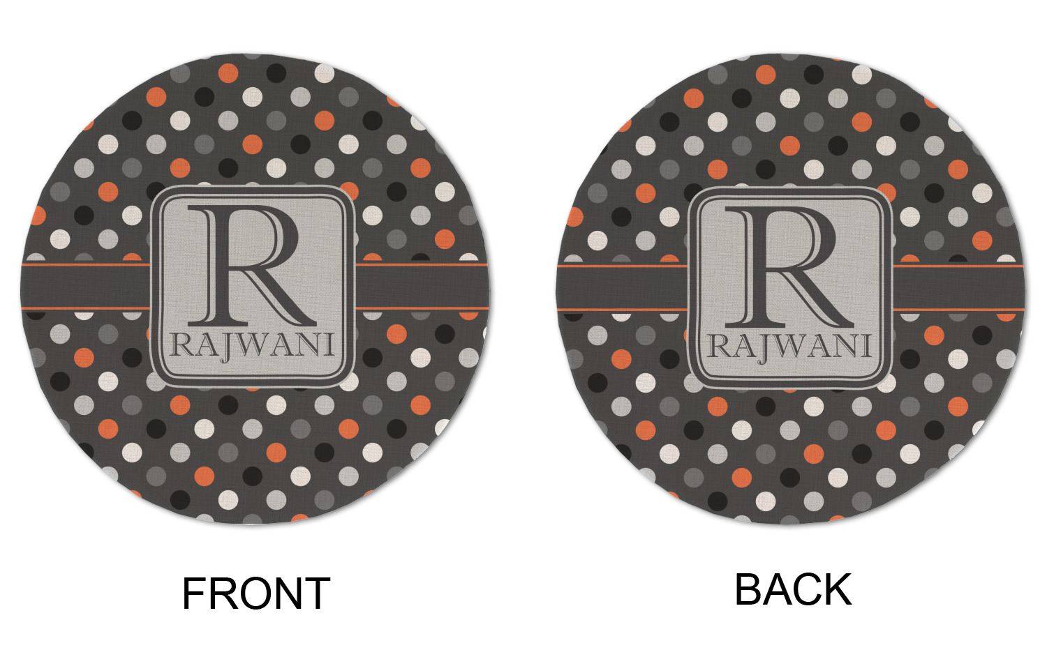 Polka dots have grown up and are not just for kids anymore. We have taken a pattern that is normally for children and by adding a modern color scheme have created a very versatile design that can be used for both adults and children. The polka dot design is set on a background of charcoal gray. Using coordinating colors of light gray, black, white, and orange create a very modern take on the timeless polka dot pattern.