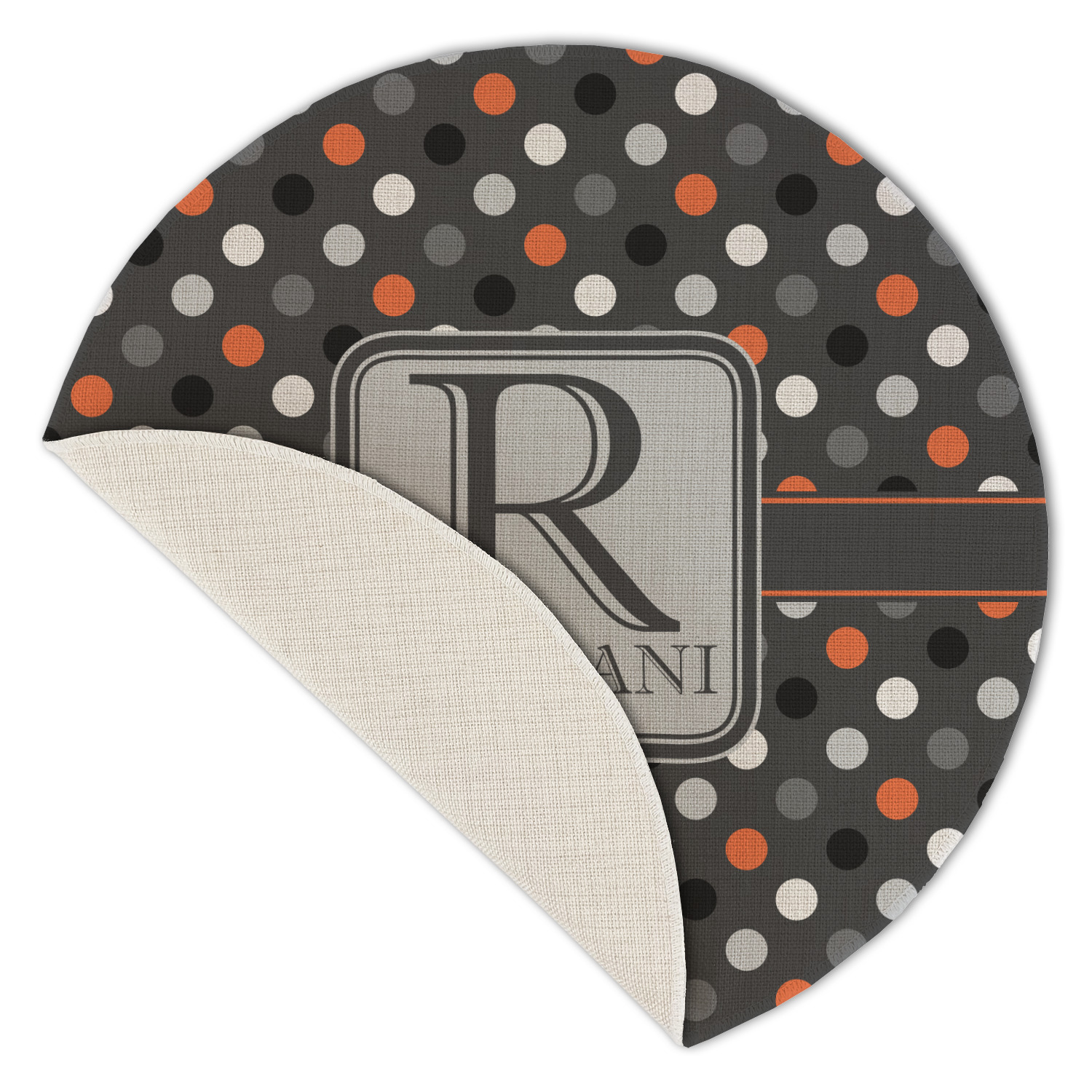 Polka dots have grown up and are not just for kids anymore. We have taken a pattern that is normally for children and by adding a modern color scheme have created a very versatile design that can be used for both adults and children. The polka dot design is set on a background of charcoal gray. Using coordinating colors of light gray, black, white, and orange create a very modern take on the timeless polka dot pattern.