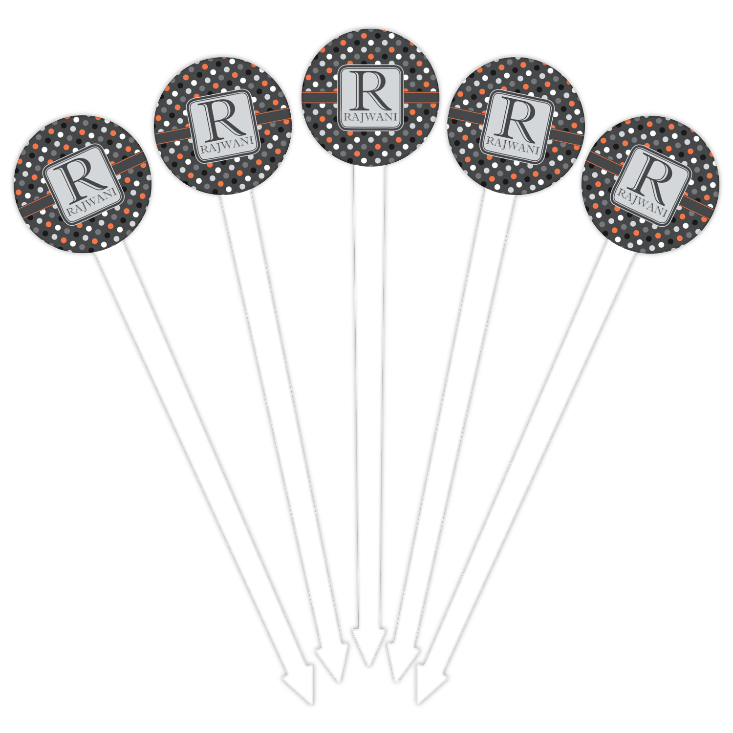 Our plastic cocktail picks have a round disc on top that is printed in full color with your event theme, colors, your logo, your photo, names, initials, monograms etc.