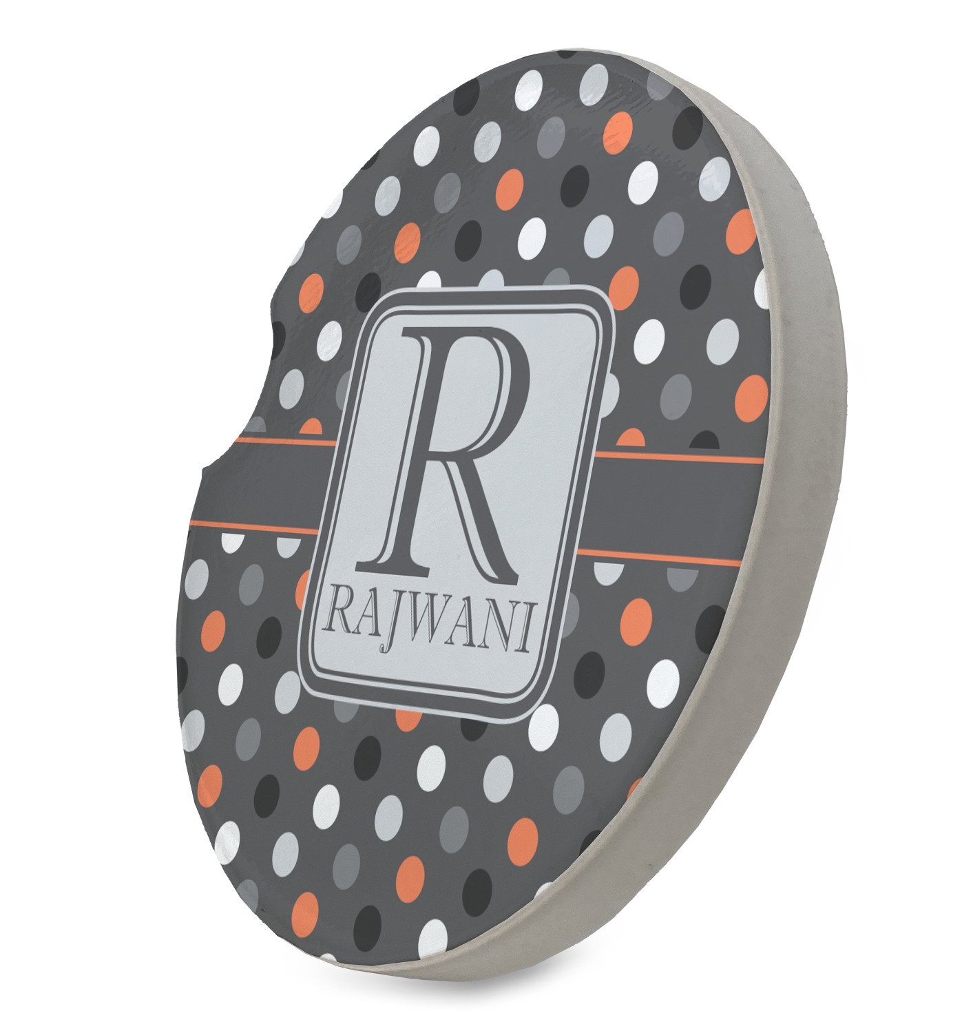 Polka dots have grown up and are not just for kids anymore. We have taken a pattern that is normally for children and by adding a modern color scheme have created a very versatile design that can be used for both adults and children. The polka dot design is set on a background of charcoal gray. Using coordinating colors of light gray, black, white, and orange create a very modern take on the timeless polka dot pattern.