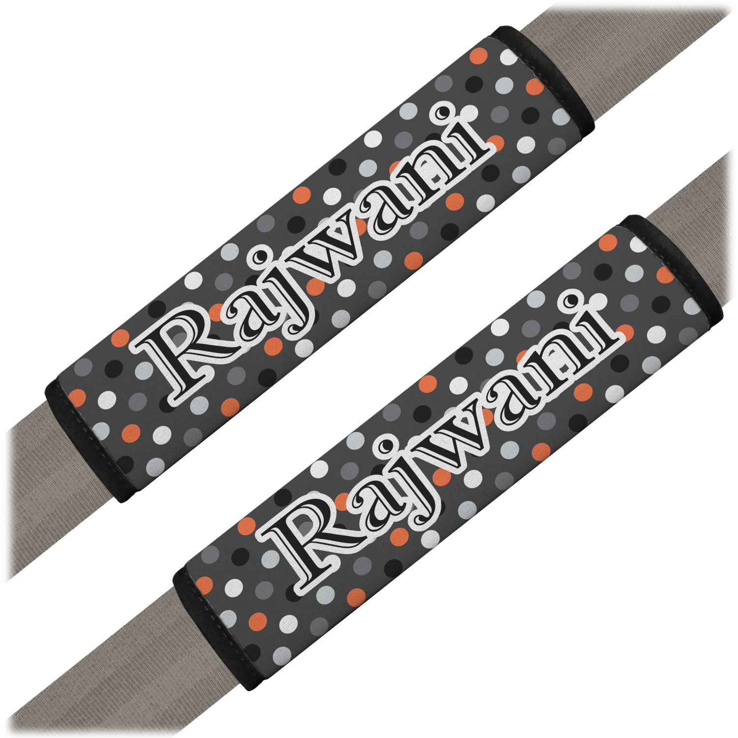 Made from neoprene, our seat belt strap covers wrap around the belt itself and have a Velcro tab for easy attachment and closure. The belt's edges are trimmed with a black polyester for a secure finish. Each cover is 9.5 by 7 inches when open and 9.5 by 2.5 inches when closed. We print your personalized design on the face of the seat belt pad.