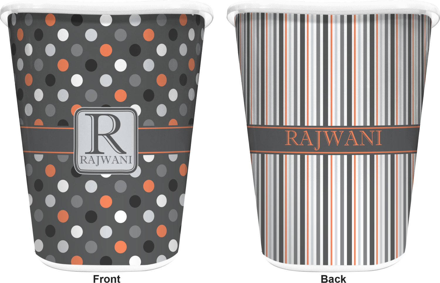 You can choose to purchase these decorative wastebaskets in either a white or a black color that will show on the base and the upper rim. Your customization is printed on a high-gloss, fine-quality vinyl adhesive, and you can choose to either have this adhesive applied to one side only or to both sides. As such, this plastic wastebasket can be single-sided or double-sided, depending on your creative vision. Your customization is printed using durable inks, making the design waterproof and resistant to fading over time.