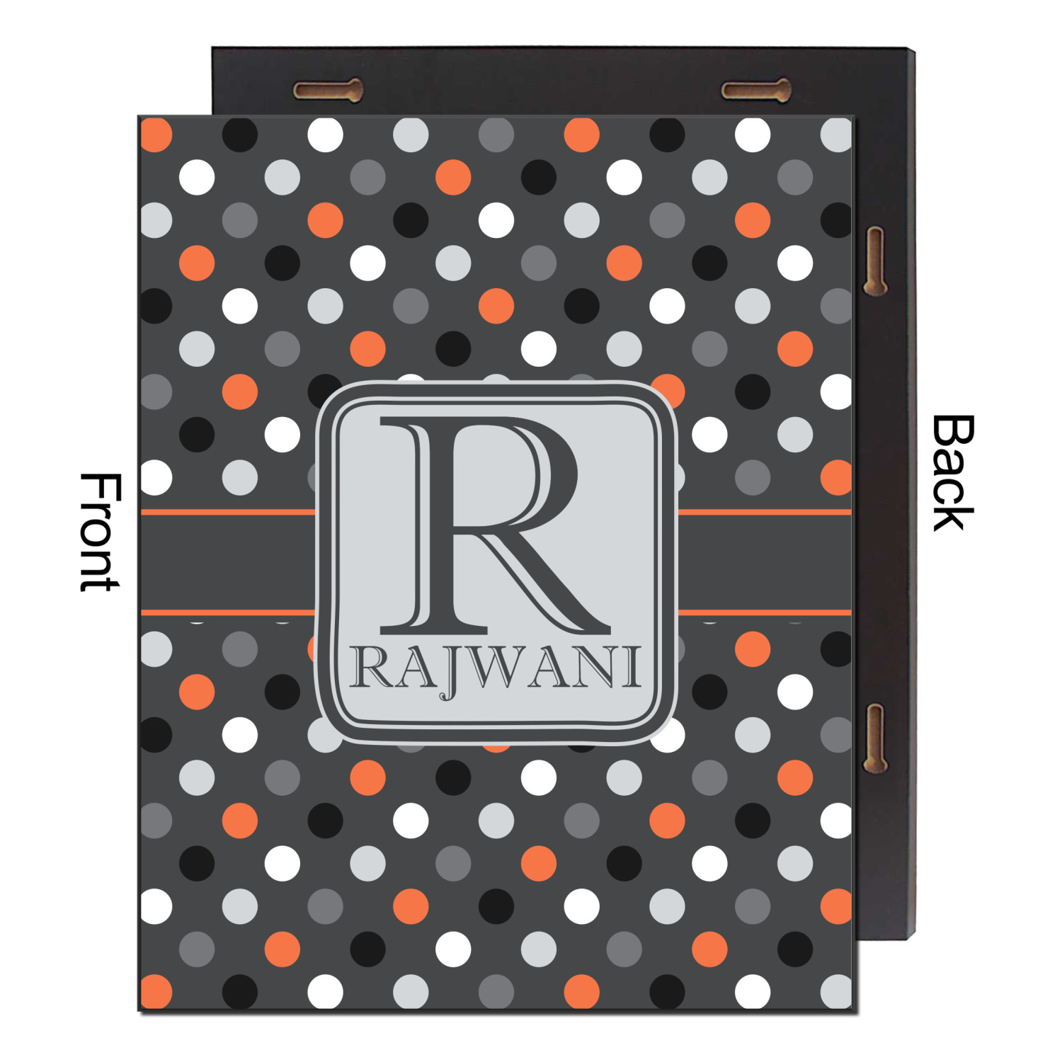 A wide band of charcoal gray with a orange trim pulls the design together. A modern square light gray label that is trimmed in double rows of dark charcoal and orange provide the focal point for personalization of your choice.