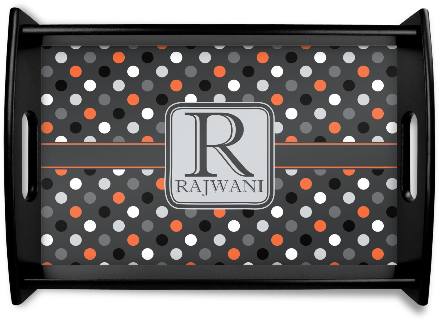 Polka dots have grown up and are not just for kids anymore. We have taken a pattern that is normally for children and by adding a modern color scheme have created a very versatile design that can be used for both adults and children. The polka dot design is set on a background of charcoal gray. Using coordinating colors of light gray, black, white, and orange create a very modern take on the timeless polka dot pattern.