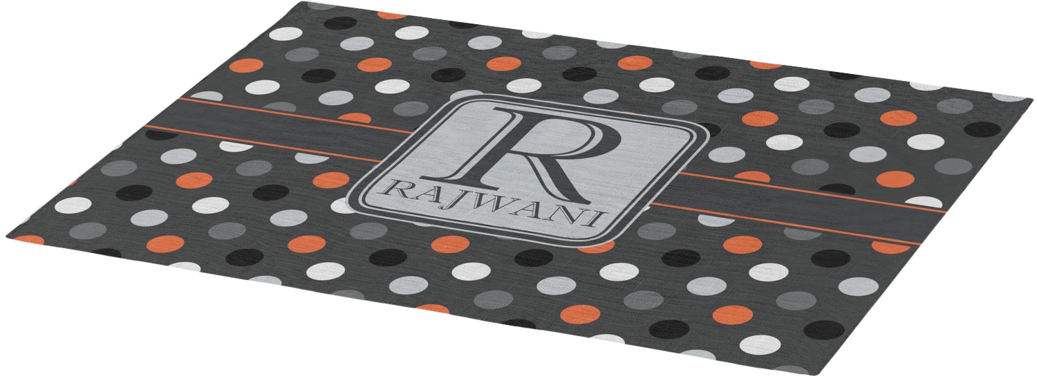 Polka dots have grown up and are not just for kids anymore. We have taken a pattern that is normally for children and by adding a modern color scheme have created a very versatile design that can be used for both adults and children. The polka dot design is set on a background of charcoal gray. Using coordinating colors of light gray, black, white, and orange create a very modern take on the timeless polka dot pattern.