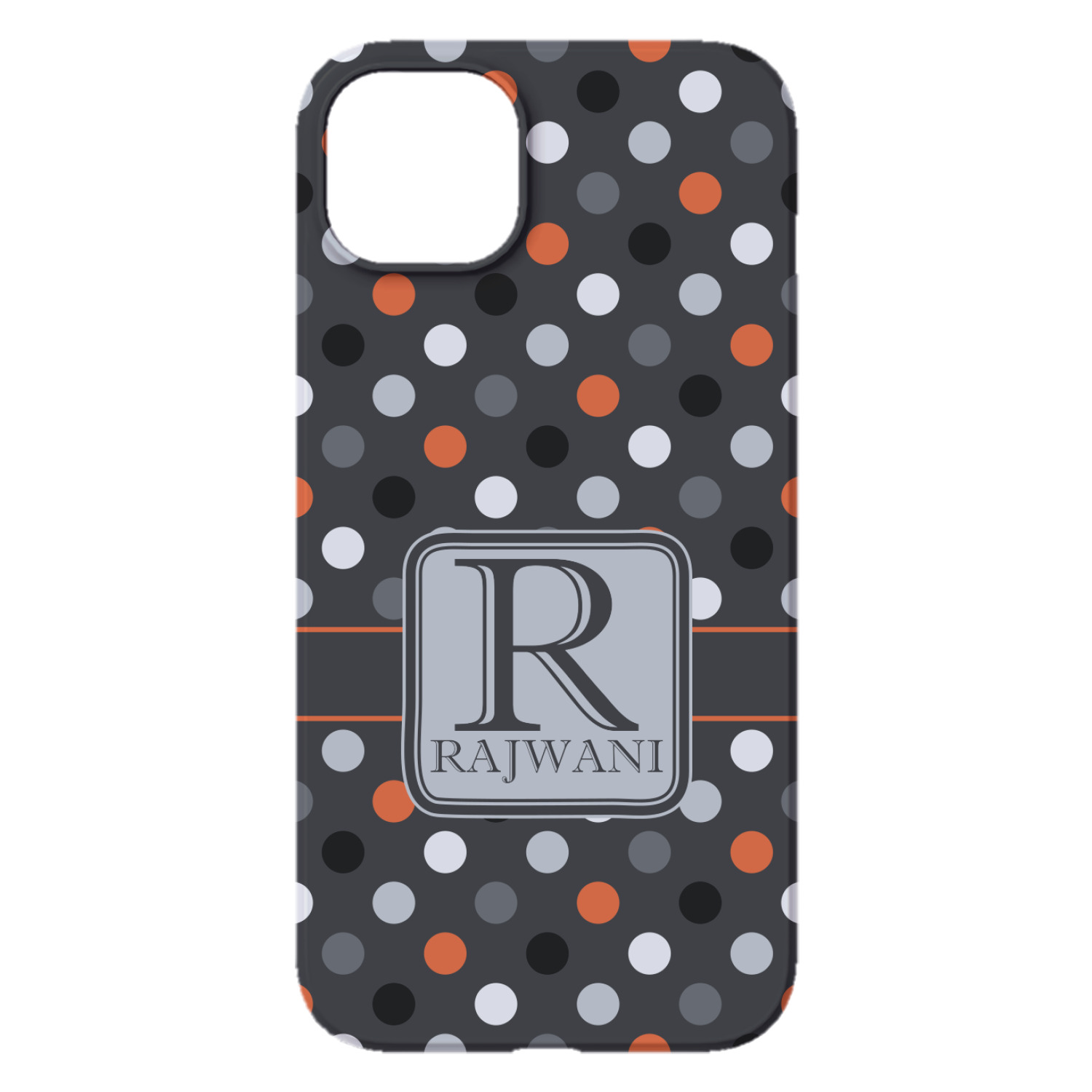 Polka dots have grown up and are not just for kids anymore. We have taken a pattern that is normally for children and by adding a modern color scheme have created a very versatile design that can be used for both adults and children. The polka dot design is set on a background of charcoal gray. Using coordinating colors of light gray, black, white, and orange create a very modern take on the timeless polka dot pattern.