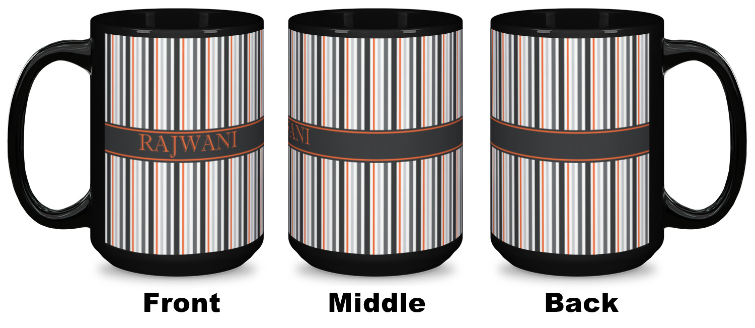 A wide band of black with a orange trim pulls the design together. This band adds a modern touch and provides the focal point for personalization of your choice.