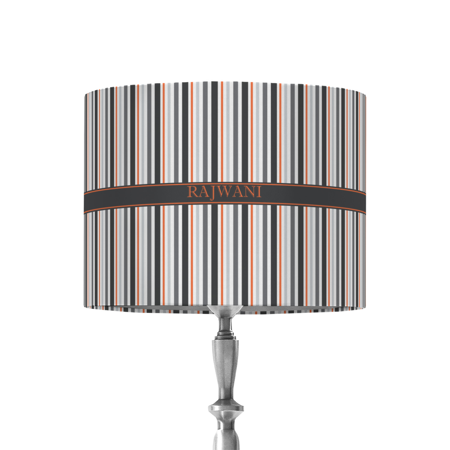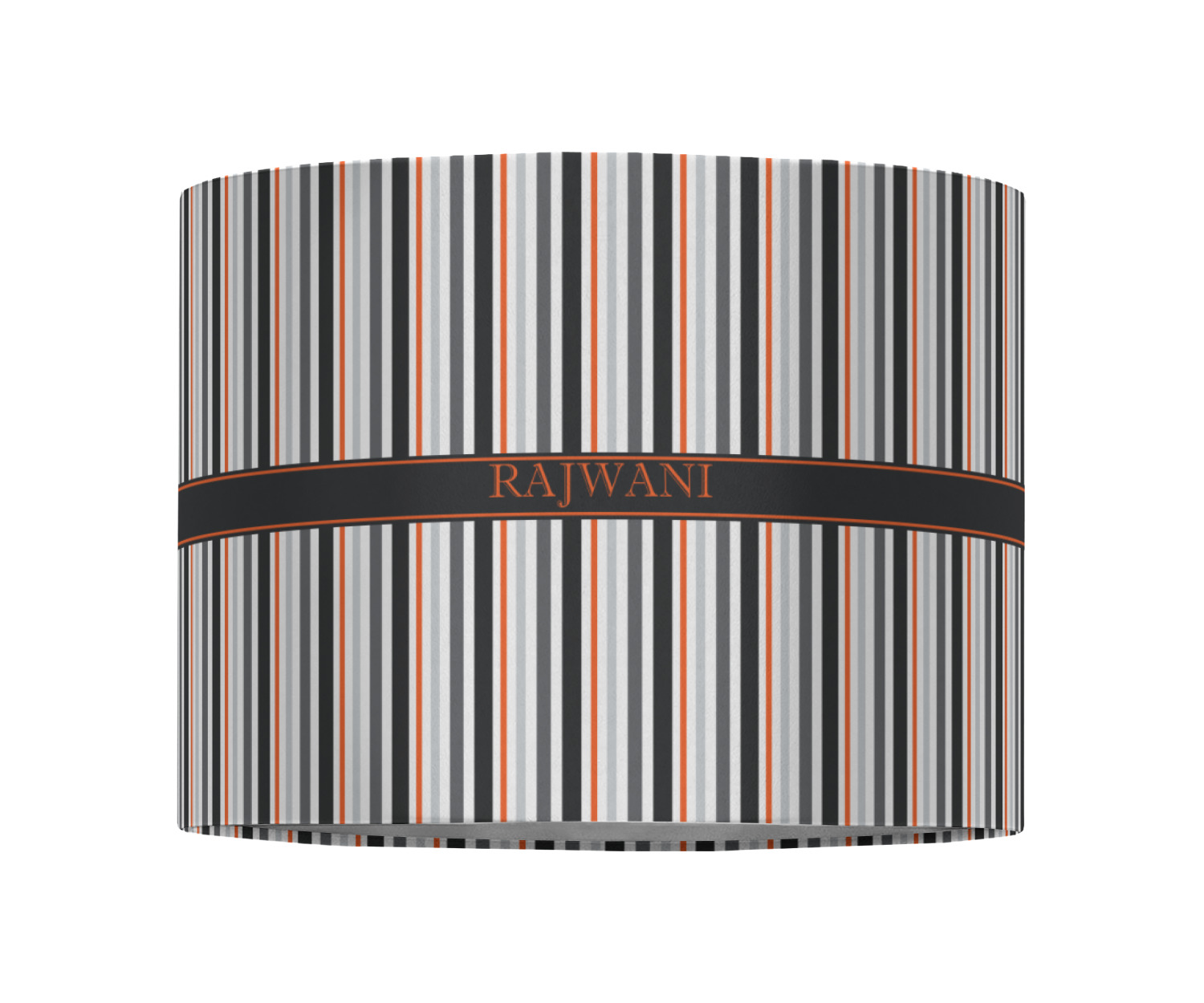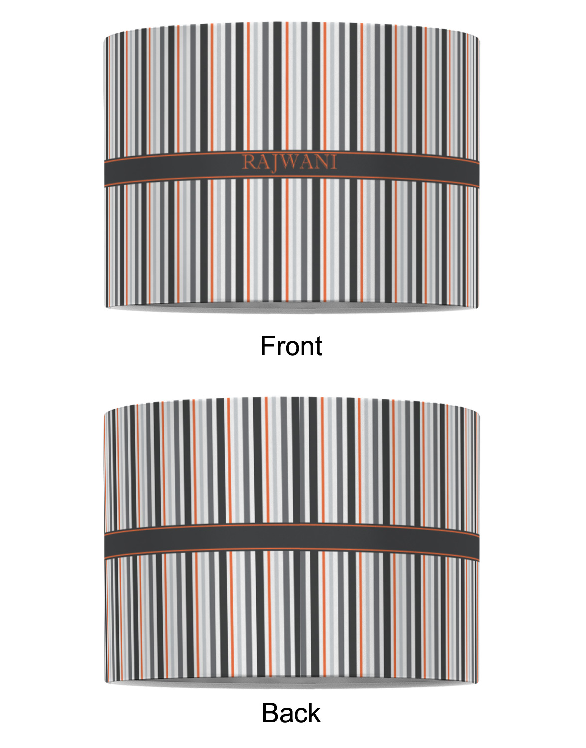 A wide band of black with a orange trim pulls the design together. This band adds a modern touch and provides the focal point for personalization of your choice.