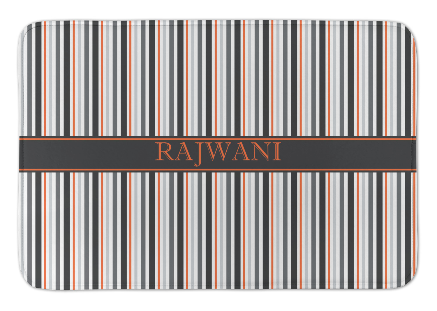 A wide band of black with a orange trim pulls the design together. This band adds a modern touch and provides the focal point for personalization of your choice.