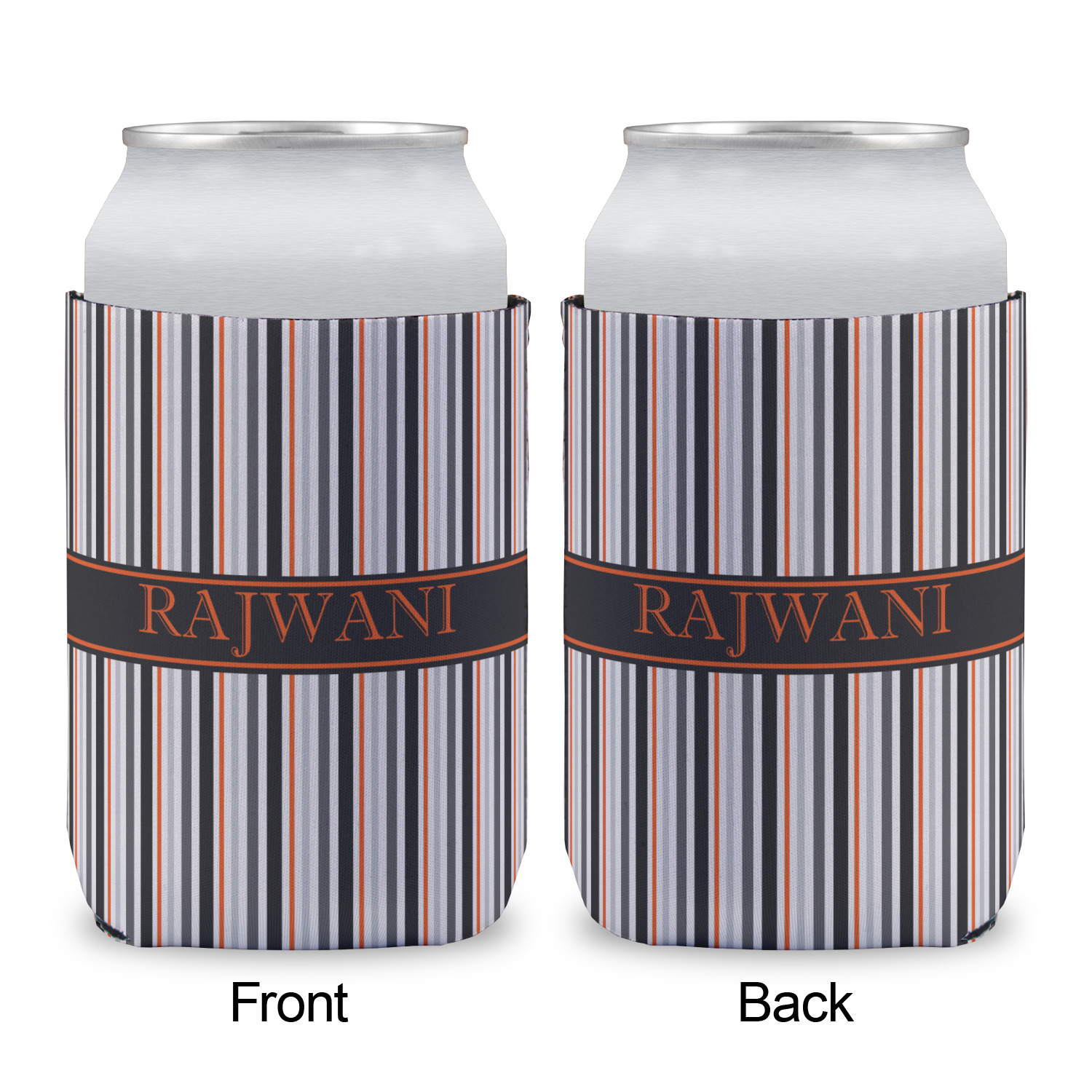 A wide band of black with a orange trim pulls the design together. This band adds a modern touch and provides the focal point for personalization of your choice.