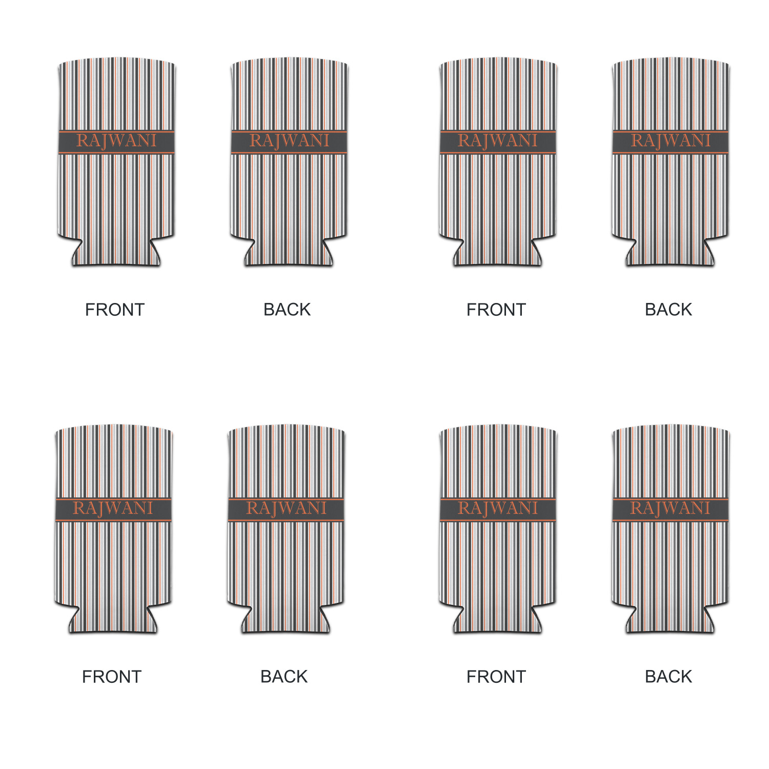 A wide band of black with a orange trim pulls the design together. This band adds a modern touch and provides the focal point for personalization of your choice.