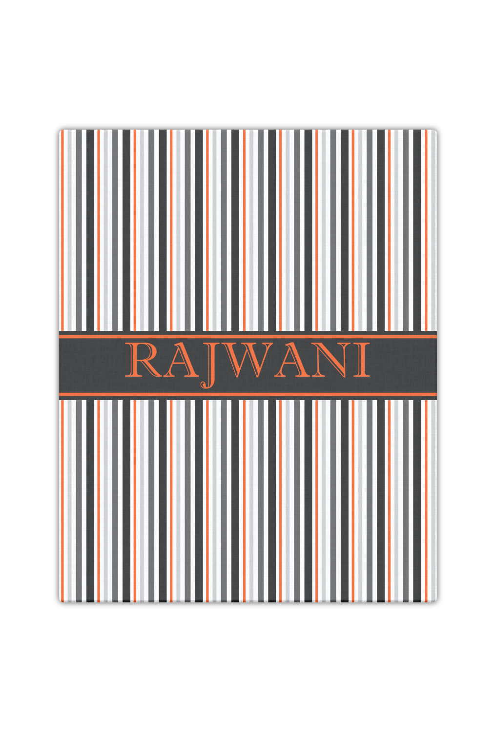 A wide band of black with a orange trim pulls the design together. This band adds a modern touch and provides the focal point for personalization of your choice.