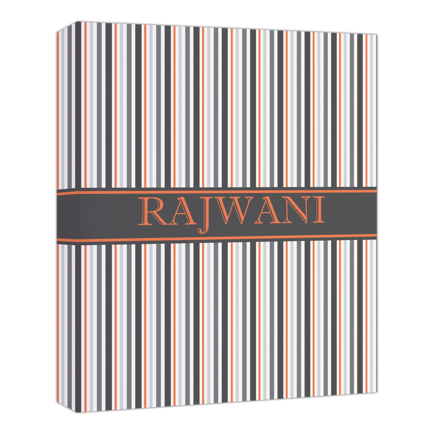 A wide band of black with a orange trim pulls the design together. This band adds a modern touch and provides the focal point for personalization of your choice.
