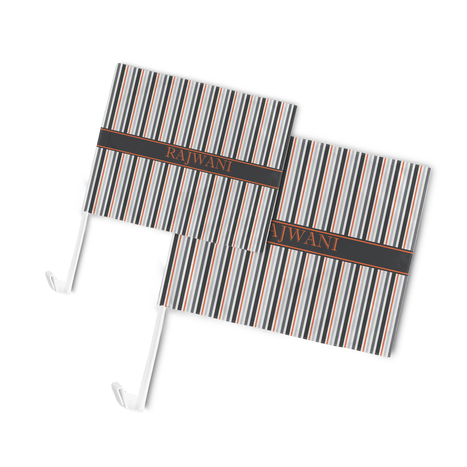 Our personalized flags are made from a durable, yet lightweight cloth that will proudly bear your logo or design of choice, while withstanding the outside elements. We have two size options - 8" x 11" and 11" x 15". Both come with a flag pole which includes a clip that secures the pole to the side window, whether it is rolled up or down. The flags are printed on both sides to display your design from all directions.