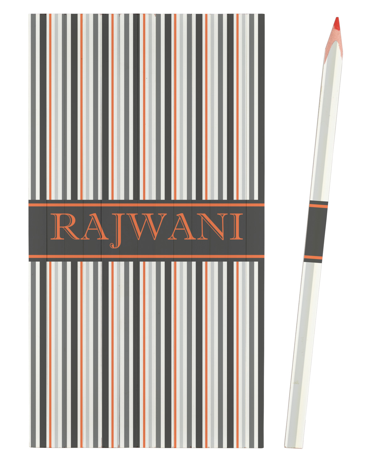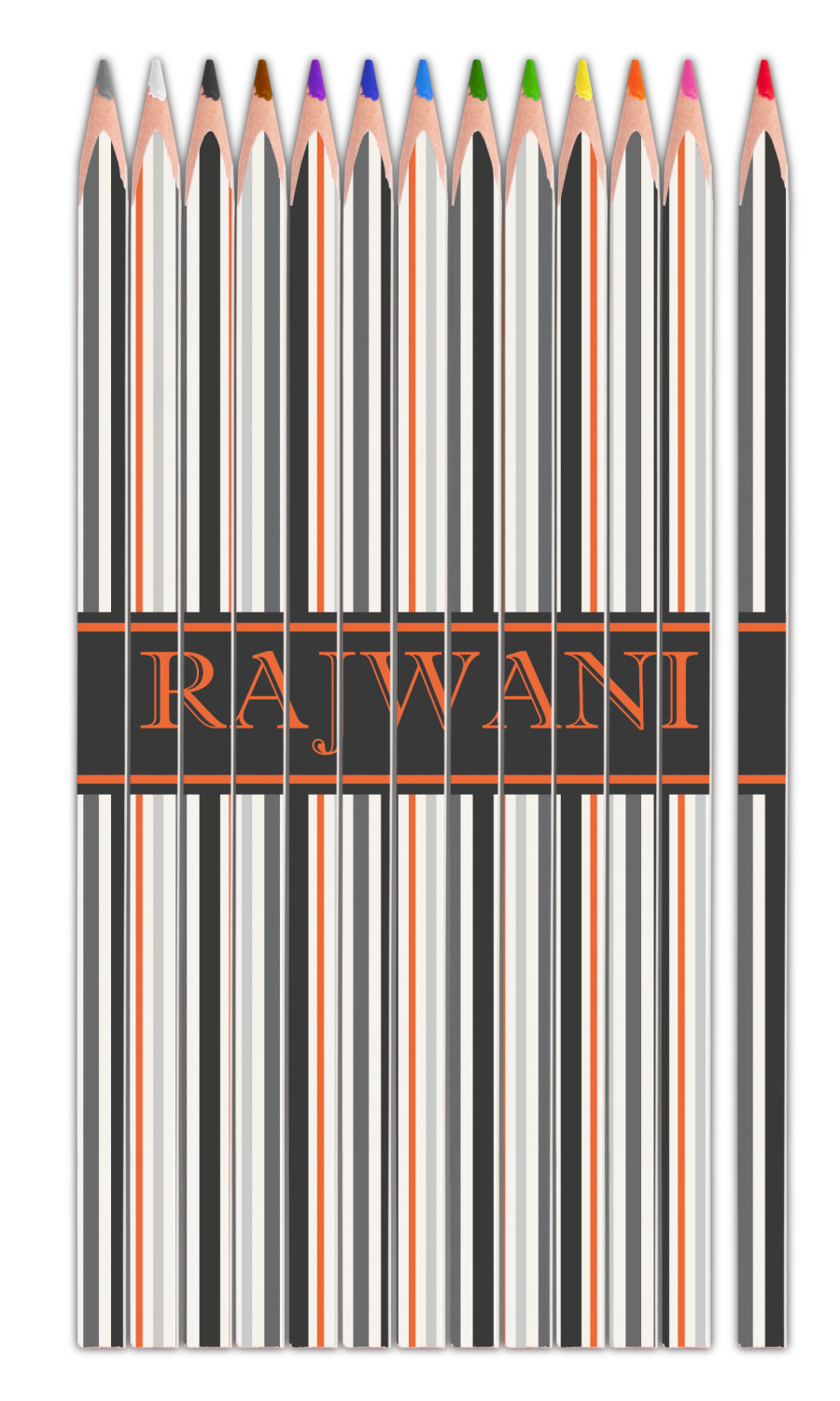 A wide band of black with a orange trim pulls the design together. This band adds a modern touch and provides the focal point for personalization of your choice.