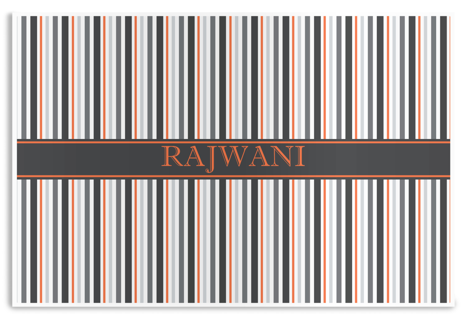 A wide band of black with a orange trim pulls the design together. This band adds a modern touch and provides the focal point for personalization of your choice.