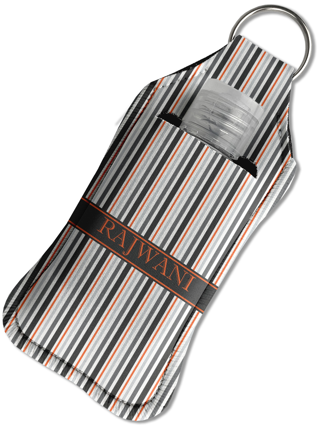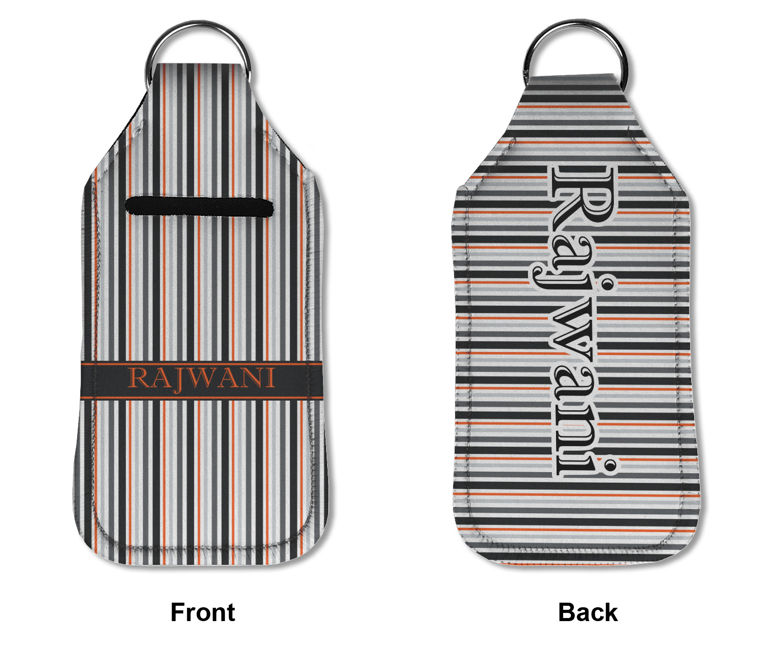 Each hand sanitizer holder comes with its own empty travel-sized, refillable hand sanitizer sure to fit snug in your customized sanitizer case! Our hand sanitizer cases are a durable, yet soft neoprene material sure to last any daily activities or travel agenda. Customize and personalize a hand sanitizer bottle holder with one of our two sizes - small (4.25" x 2.25") or large (5.5" x 2.5"). Each travel sanitizer holder comes with a keyring for attachment on bags, keys, or more!