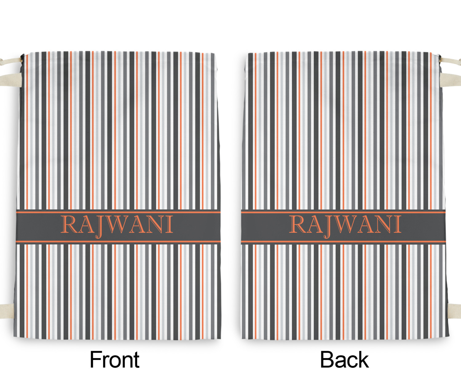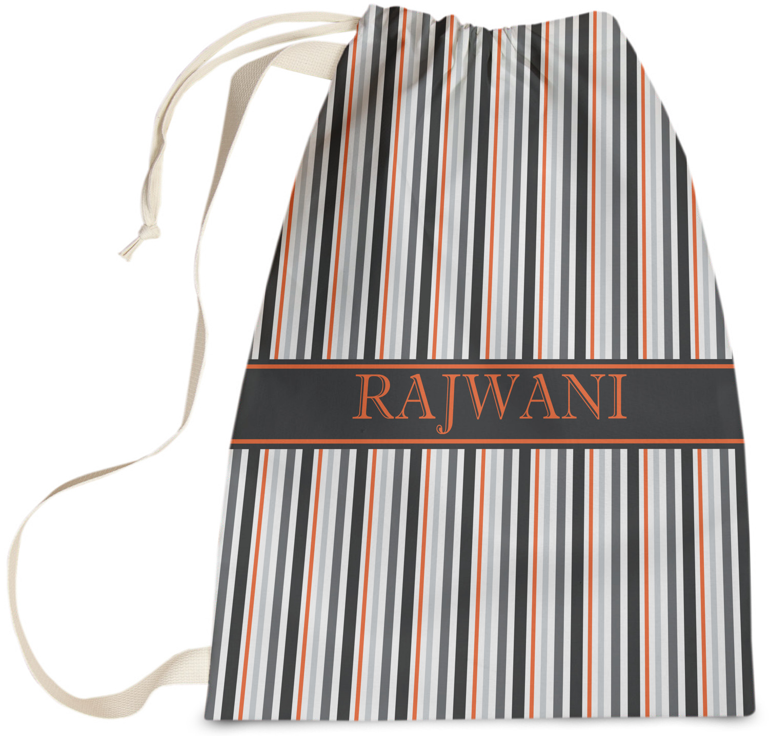 Carry your laundry in style with these customized laundry bags. Available in two sizes, featuring a natural colored woven strap and a cinch cord, these bags hold a lot of clothes or anything else you want to fit in them.