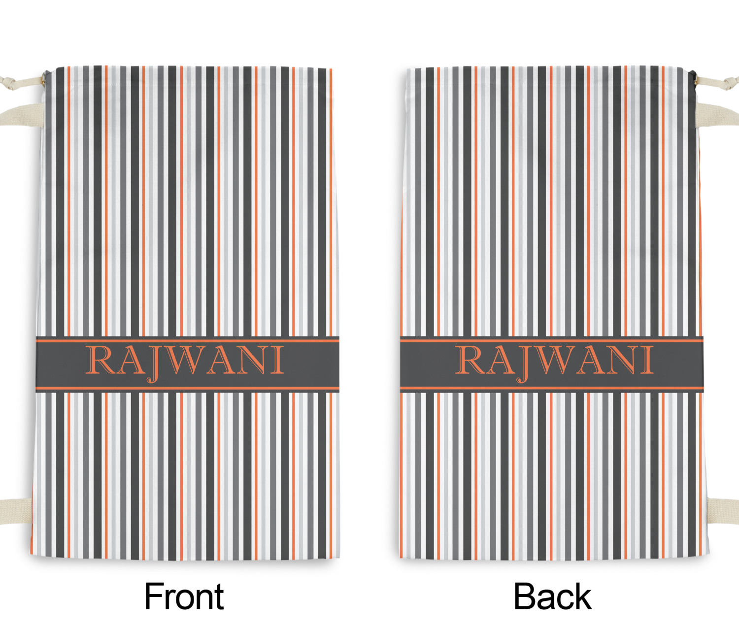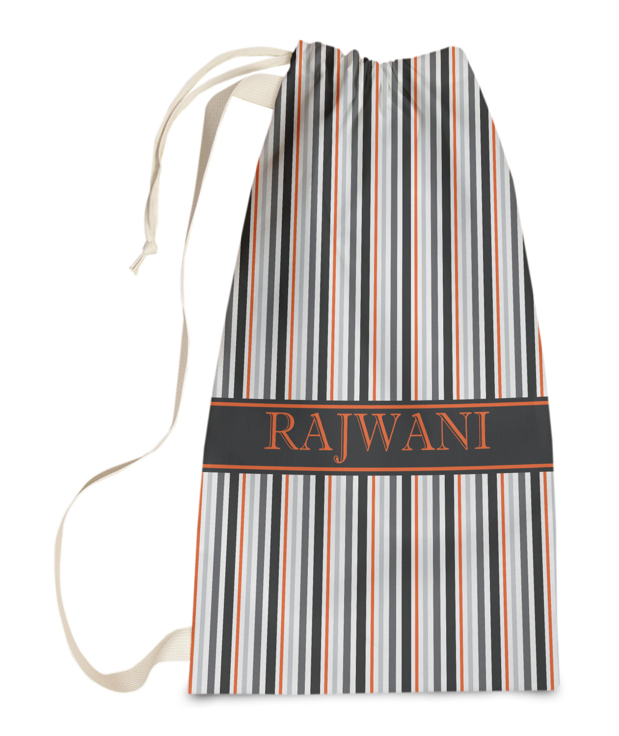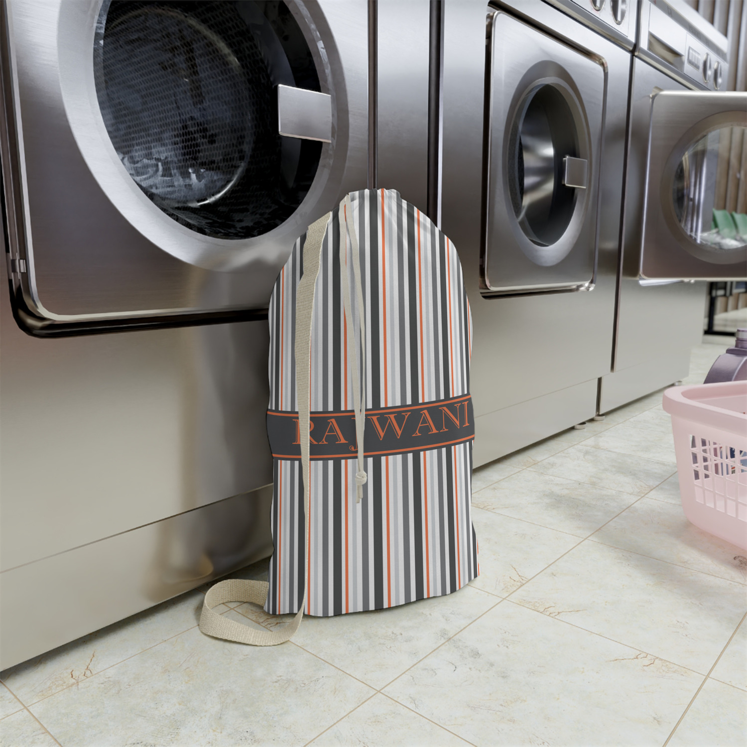 Carry your laundry in style with these customized laundry bags. Available in two sizes, featuring a natural colored woven strap and a cinch cord, these bags hold a lot of clothes or anything else you want to fit in them.
