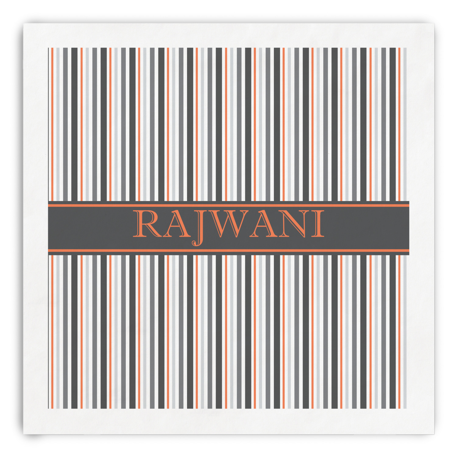 A wide band of black with a orange trim pulls the design together. This band adds a modern touch and provides the focal point for personalization of your choice.