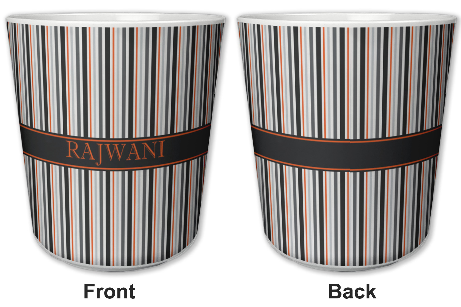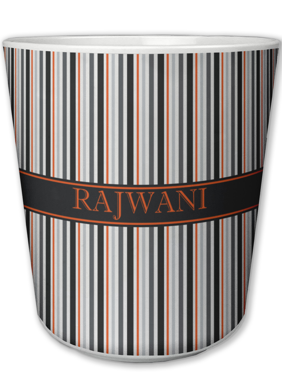 A wide band of black with a orange trim pulls the design together. This band adds a modern touch and provides the focal point for personalization of your choice.